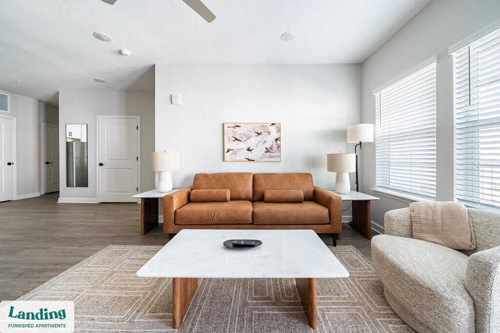 Landing offers flexible lease terms from weeks to months. Please always visit our website or contact us for the latest pricing & availability. Stay longer, save more: 6-Month Minimum base rent: starts at $2011/mo 12-Month Minimum base rent: starts at $2041/mo Landing offers flexible leases across a network of over 35,000 fully-furnished apartments throughout 375+ cities so you can rent on your terms, practically anywhere, and avoid the hassle of paying deposits or application fees. Visit to learn about all the benefits of a Landing membership, see our competitive up-to-date pricing, explore available apartments, take virtual tours, and make reservations online without jumping through traditional rental hoops. Landing's apartments at Palm Breeze Apartments are designed for comfortable, easy living, with the ability to stay as long as you like. Experience living with Landing Every apartment is outfitted with all the modern essentials including: custom-designed furnishings, a fully-equipped kitchen with deluxe stainless steel appliances, a gourmet coffee maker, premium linens, Smart TVs, and incredibly fast, reliable internet for working from home. When you live with Landing, you'll enjoy a hassle-free experience with the added benefit of 24/7 access to our dedicated member experience team. Some of the nitty-gritty: a background check and proof of income are required; we're completely smoke-free; bundled utility packages and pricing vary based on length of stay; pet-friendly options available; listed price reflects a 12-month minimum stay.