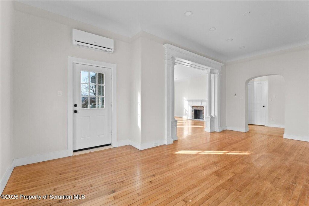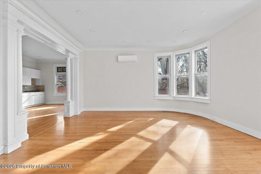 Experience elevated living in this beautifully renovated five bedroom two full bath luxury first floor apartment located in the Hill Section of Scranton. This spacious residence blends timeless architectural charm with modern updates,featuring high ceilings,refinished hardwood floors,and abundant natural light throughout. The expansive open living and dining areas are highlighted by stunning original columns and a decorative fireplace,creating a warm yet sophisticated space perfect for both relaxing and entertaining. The oversized kitchen offers sleek modern cabinetry,updated countertops,and plenty of room for cooking and gathering. The layout includes two large bedrooms and three additional smaller bedrooms,offering flexibility for living,home office space,or guests. Both full bathrooms have been tastefully updated with clean,contemporary finishes. Additional features include energy efficient mini split systems for heating and cooling,recessed lighting throughout,and classic details that add character and elegance. Conveniently located near downtown Scranton,hospitals,universities,and major highways,this exceptional apartment offers the perfect combination of space,style,and location.1st month rent + $2500 Security deposit required. Credit/background check. Income > 3x rent.