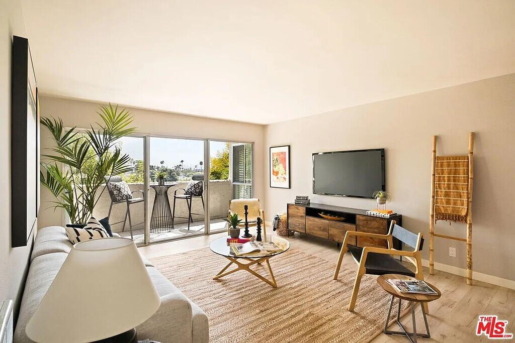 Welcome to one of West Hollywood's most desirable locations, combining central convenience with quiet residential charm. This tasteful condo offers an open, light-filled floor plan with a galley kitchen, dining area, and direct east-facing views of Downtown Los Angeles from both the living room and private terrace. The two bedrooms and baths are thoughtfully positioned on opposite sides of the home for maximum privacy, while generous closet space provides excellent storage. Building amenities include a ground-level pool and spa, landscaped common areas, and a rooftop deck with sweeping city views. Two side-by-side parking spaces in the secure gated garage and ample guest parking complete this exceptional offering. Welcome to one of West Hollywood's most desirable locations, combining central convenience with quiet residential charm. This tasteful condo offers an open, light-filled floor plan with a galley kitchen, dining area, and direct east-facing views of Downtown Los Angeles...