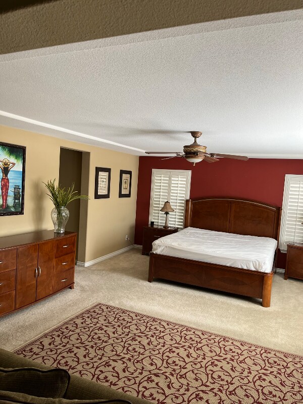 Runaway Bay Primary Suite – 2026 Joy’s Rentals – Riverside County, Eastvale, CA “It matters where you lay your head.” Extra Large Furnished Primary Suite – 1,150 SQ FT This professional residence offers fully furnished accommodations in a safe, quiet, and comfortable environment. Suite Features: • Living Space: 1,150 SQ FT of fully furnished comfort • Bedroom: California King Bed, 2 nightstands, dresser, ceiling fan, pub table with leather chairs, Bose surround sound • Living Room: 75"Smart TV, Paramount Plus, ceiling fan • Master Bathroom: His-and-Hers vanity, jacuzzi tub, large walk-in shower, 24” wall-mounted TV, separate toilet area, ceiling fan • Kitchen: Full-size fridge, microwave, air fryer, electric kettle, convection oven, all essential dishes, flatware, pots & pans • Closet: Large walk-in with armoire • Garage: Parking with remote access • Laundry: Private washer/dryer • Connectivity: High-speed WiFi Additional Amenities: • Keyless entry (side door) • Utilities included (central air & heat, water softener) House Standards & Requirements • Smoke-free property (To support a clean and healthy environment) Non Smoking ONLY • No pets (allergies) Requirements: • Employment verification • Income verification • Renters insurance • reference & ID