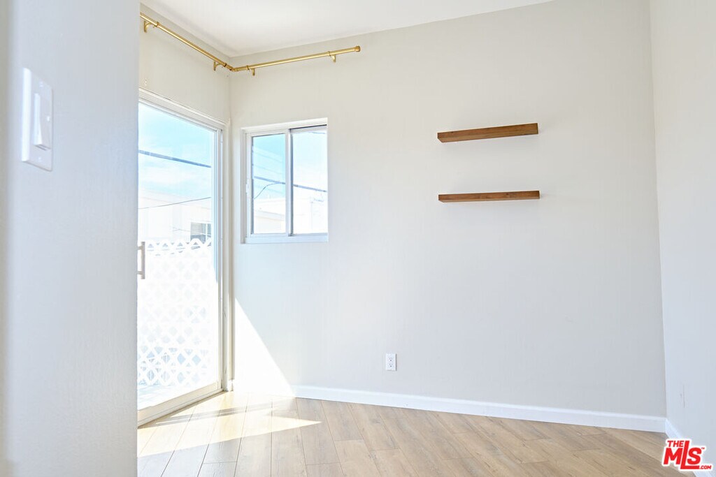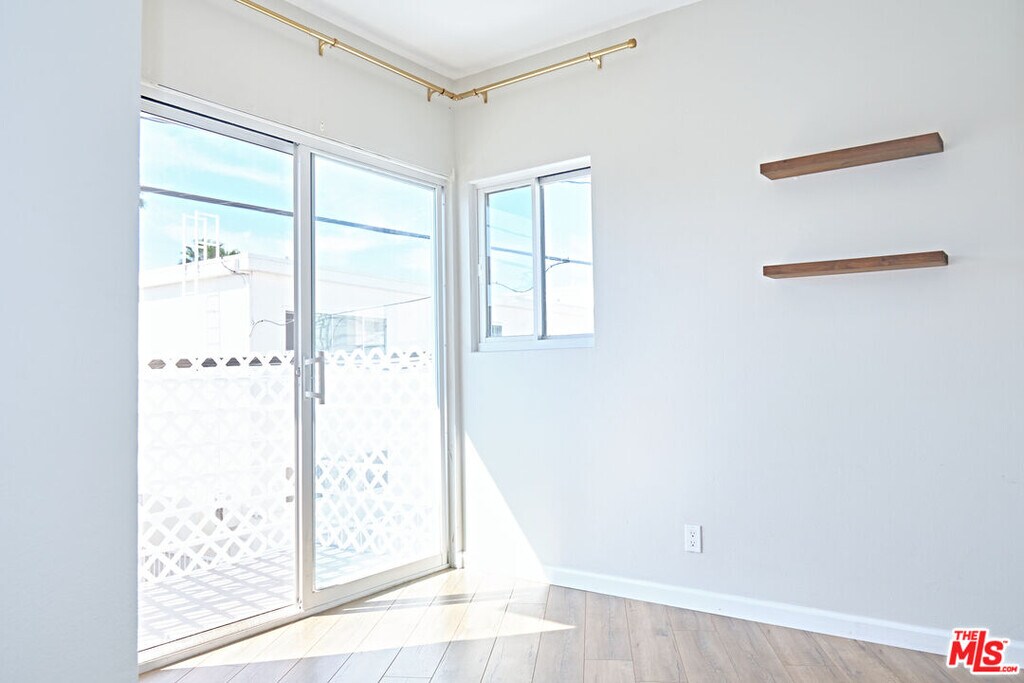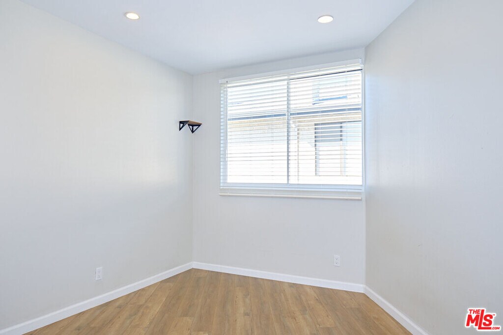 Tucked just a half block off coveted Montana Avenue, this beautifully updated first-floor residence offers the perfect blend of style, convenience, and modern living. Flooded with natural light, the open layout showcases brand-new wood flooring, recessed lighting, and elegant crown molding throughout. The modern kitchen features sleek shaker cabinetry, stainless steel appliances, and a clean, functional design perfect for easy weeknight meals or hosting friends. Thoughtfully configured as a smaller 2-bedroom that lives like a spacious 1-bedroom plus dedicated office or flex space, this layout is ideal for today's work-from-home lifestyle giving you separation between living and productivity without sacrificing comfort. Both bathrooms have been fully renovated with classic subway tile, new shower doors, and updated fixtures, delivering a fresh, spa-like feel. Enjoy the convenience of a dedicated private laundry room just steps from your front door, making everyday living seamless while maximizing interior space. Located in one of Santa Monica's most desirable neighborhoods, you're just moments from Montana Avenue's best cafes, fitness studios, restaurants, and boutiques perfect for an active, walkable lifestyle. A rare opportunity to live, work, and unwind in one of LA's most sought-after locations. MLS# 26655531