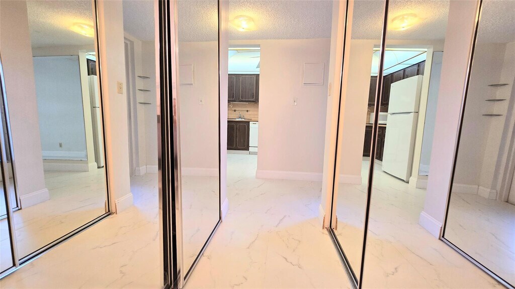 Excellent rental opportunity in this impeccably maintained ground-floor residence featuring 1 bedroom and 1.5 bathrooms corner unit. This unit boasts elegant marble-finish porcelain tile flooring throughout,creating a modern and clean atmosphere. The spacious living area is filled with natural light and opens to a private screened-in patio,perfect for enjoying peaceful views of the lush green areas and the golf course located directly behind the property. The primary bedroom offers ultimate comfort with an en-suite bathroom and a large walk-in closet with custom wooden organizers. Move-in ready. MLS ID F10552483