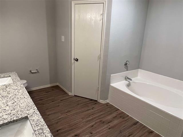 Gorgeous Two Story Single Family Home for rent in Hurst! Built in 2002. This adorable home features a great floor plan! 2474 Sq Ft. Large kitchen fully equipped with Stainless Steel Appliances such as Electric Cooktop, Dishwasher and built-in Microwave. Tons of cabinets, storage and beautiful granite countertops. Light & bright with large windows! This property has 2 master suites, one upstairs and one downstairs. Both master bathrooms feature double vanities, bathtubs, standing showers and large closets. 2 other bedrooms and game room are located upstairs. There is an office with french door downstairs. Large fenced back yard! Pets welcome! Close to shopping, restaurants, fitness center, all major freeways, & airport. Call today to schedule your showing!