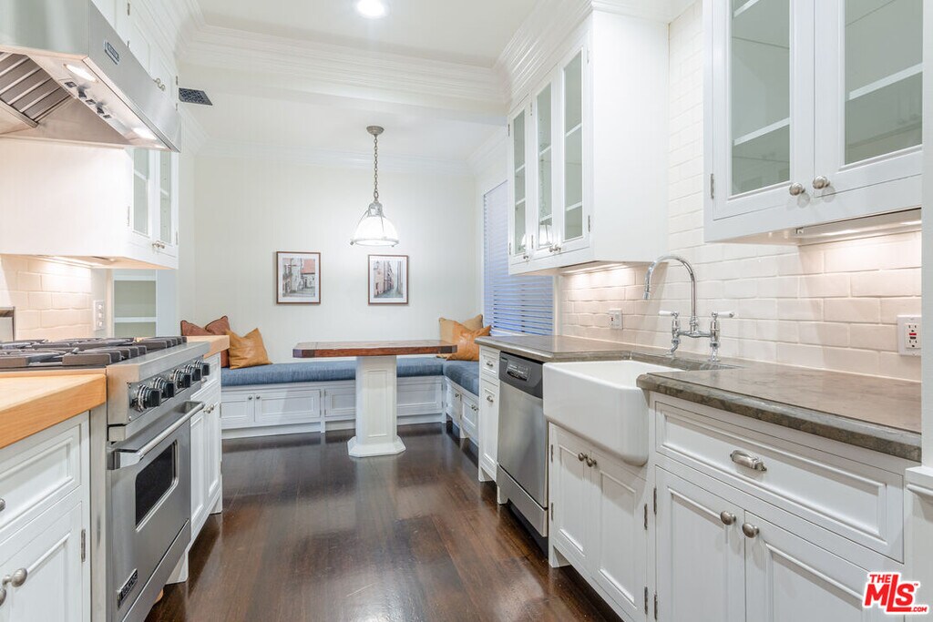 Welcome to this elegant, traditional-style condo nestled in one of West Hollywood's most coveted neighborhoods. Quietly positioned on the peaceful side of the building, this spacious residence showcases premium hardwood floors, intricate crown moldings, and custom built-in cabinetry throughout. The stunning eat-in kitchen is a chef's delight, featuring a cozy breakfast nook, Sub-Zero refrigerator, and top-of-the-line Viking appliances. A gracious formal entry leads to both a sophisticated dining room and a bright, inviting living room with French doors that open to a private terrace ideal for enjoying morning coffee or unwinding in the evening. The luxurious primary suite offers a generous walk-in closet and a spa-like bathroom, creating a true retreat. The second bedroom, currently configured as a den, provides flexible use as a guest room or home office, and also opens to the terrace through elegant French doors. Residents also enjoy access to the building's beautifully maintained amenities, including a private gym, sparkling pool & Spa's. MLS# 25598793