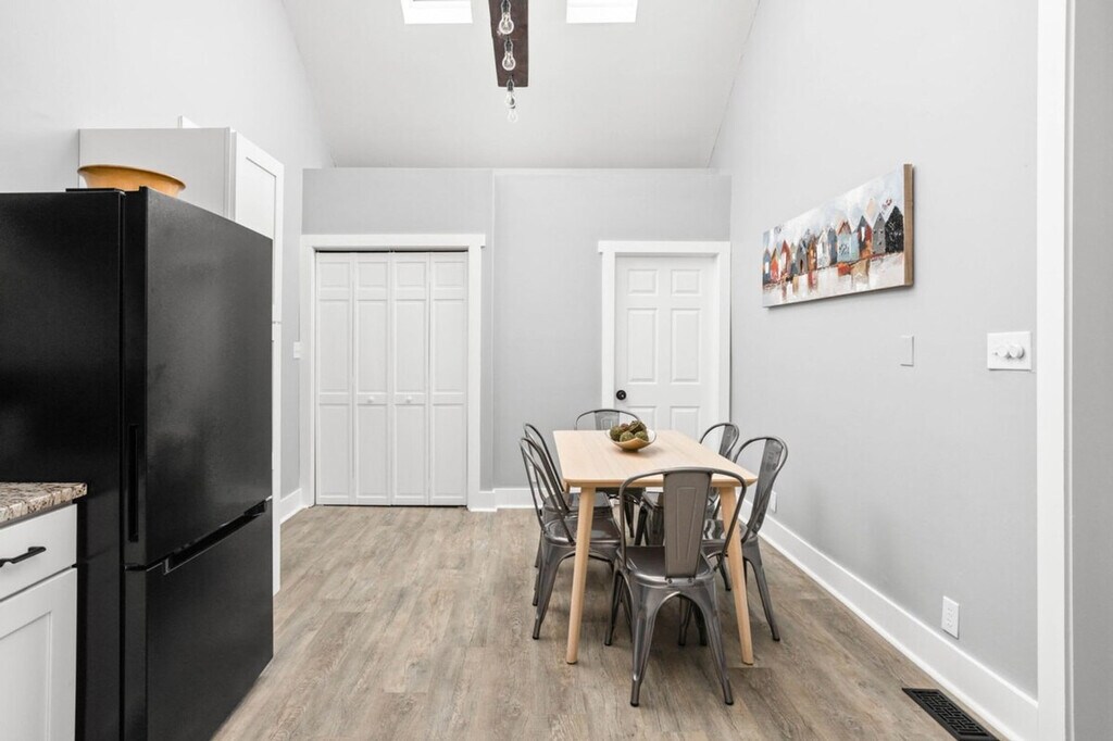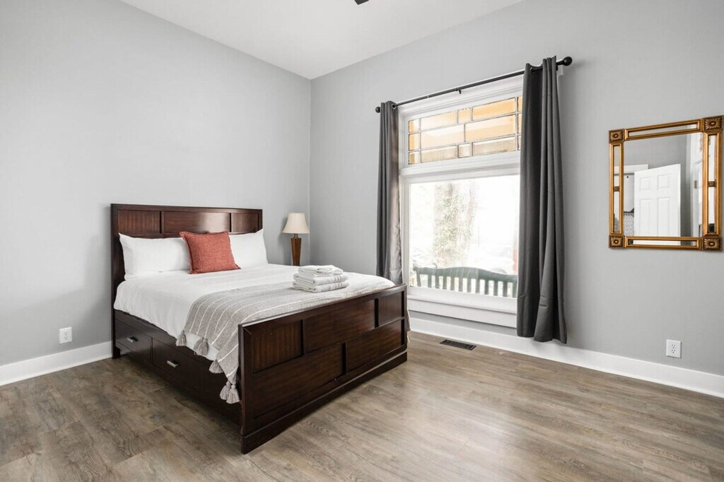 Spread out and feel at home in this spacious 4-bedroom home, perfect for sports fans, group trips, and work travelers. Enjoy historic charm and modern comforts, with private bedrooms and room to unwind. This beautifully designed home features a spacious living area with plush furniture and a large smart TV, a fully equipped chef’s kitchen, and two modern bathrooms featuring luxurious walk-in showers. Premium bedding and inviting outdoor spaces provide comfort and relaxation. Free street parking is available for added convenience. Located in Ransom Place, a charming neighborhood characterized by its beautifully preserved historic homes and tree-lined streets, this home is conveniently close to the city's cultural and business centers. Walk to downtown Indy and Ransom Place favorites, or take a short drive to nearby attractions such as the Indianapolis Motor Speedway (11 minutes), Mass Ave (5 minutes), the Indianapolis Convention Center (5 minutes), and Lucas Oil Stadium (7 minutes). Quiet hours are between 10 PM and 8 AM. All damages must be reported promptly and are to be paid by the guest. Parties are prohibited and will incur a $2000 fee. Smoking is prohibited and will incur a $1000 fee. All trash is to be taken out and disposed of, and the dishwasher must be started. The maximum property capacity is 8, and no unregistered guests are allowed. This property is equipped with exterior security cameras located at the main entrance, the backyard, and the garage. These are motion activated and can be remotely monitored to ensure a secure and comfortable stay. Additionally, there is a Minut sensor inside the home in the main living area that tracks sound levels and smoke detection but does not record audio. Tampering with cameras or the sensor will result in additional fees. Registration Number: SRP-000554 [SI]