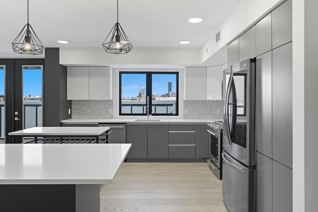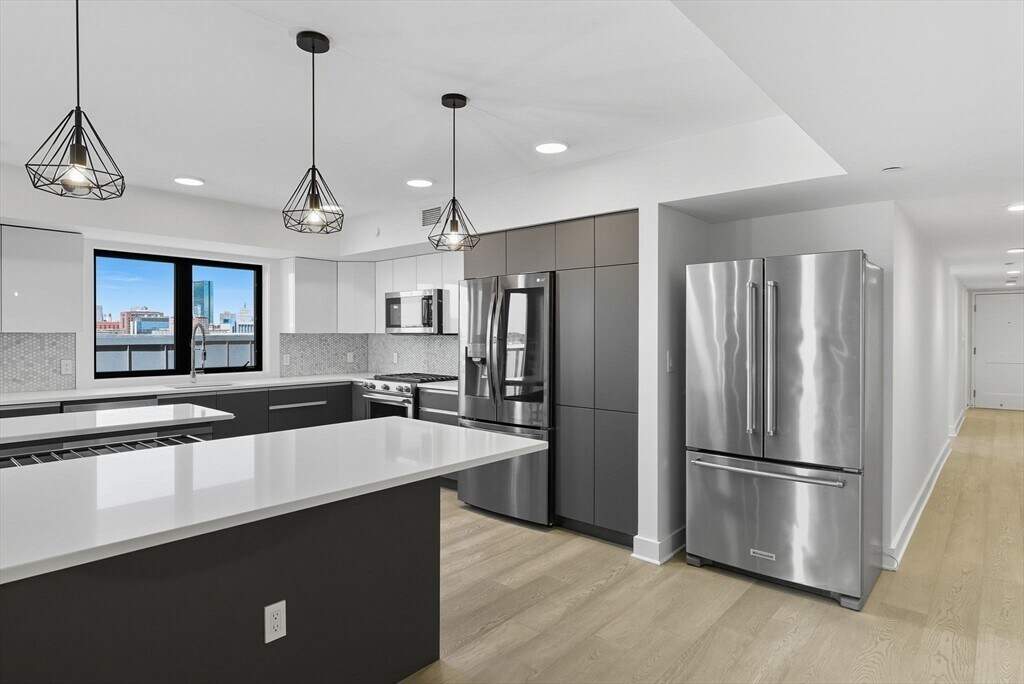 Penthouse Unit 501 at The Residences at Willow Court offers the best of city living with low-maintenance comfort. This three-bedroom,two-bath home features an open layout with hardwood floors,a modern kitchen with quartz counters and stainless steel appliances,and in-unit laundry. The massive 863 Sq.Ft. private deck offers stunning skyline views,perfect for entertaining or enjoying quiet evenings outdoors. Central air,two garage parking spaces with EV charging,and elevator access make daily life easy. Located in the South Bay area,you’ll be steps from shopping,dining,and nightlife,with easy access to the Red Line,Newmarket commuter rail station,and Route 93. MLS# 73430528