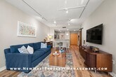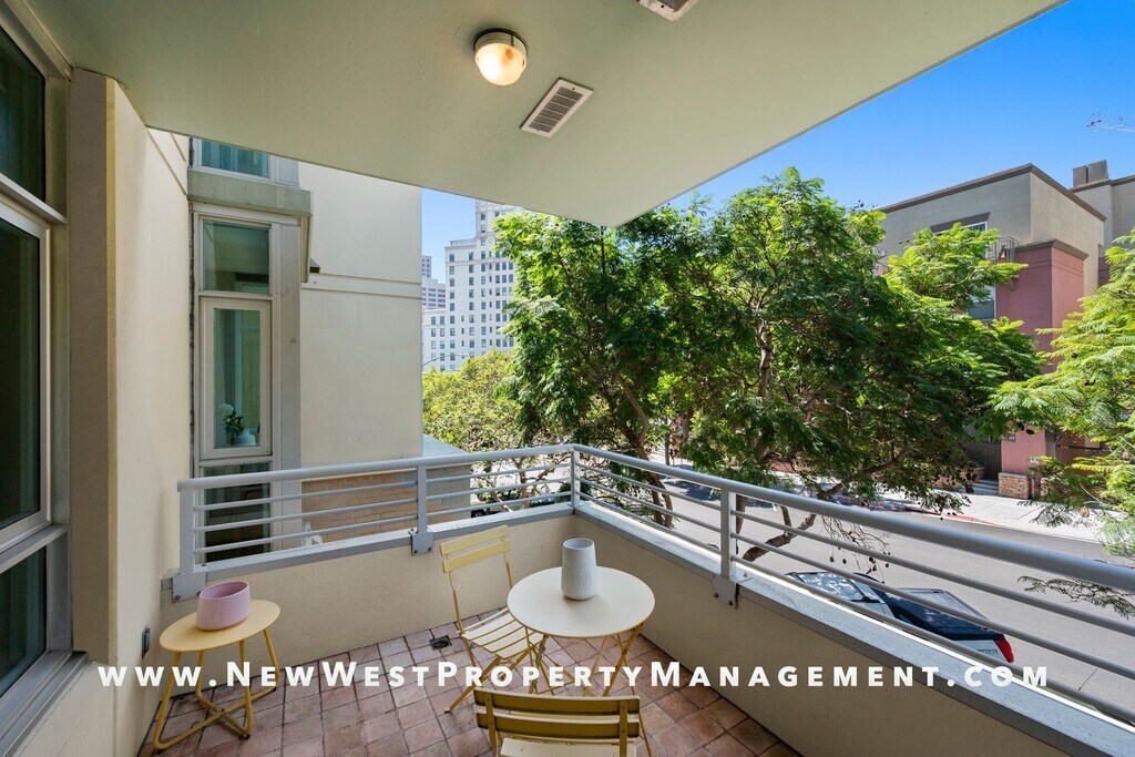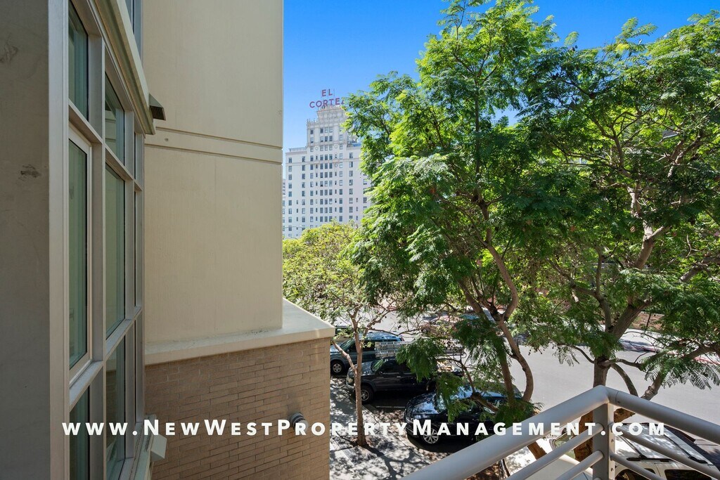 Experience serene treetop views from this west-facing, end-unit residence at Discovery, complete with a private balcony! The upgraded chef’s kitchen is a true centerpiece, showcasing new Calacatta quartz countertops, top of the line GE Profile appliances, timeless shaker cabinetry, and a deep, single-basin stainless sink, combining style with practical ease for cleanup. Enjoy recessed lighting and custom paint tones throughout, for a sleek, modern look. The open-concept living area is highlighted by luxury vinyl plank flooring, expansive windows that flood the space with natural light, a window bench seat with built-in storage, track lighting, remote shades, and a cozy fireplace. The spacious primary suite is thoughtfully designed with custom California Closets, a built-in dresser, and remote shades for effortless privacy. The beautifully remodeled guest bath features a walk-in shower and designer finishes. Additional conveniences include one secure parking space near the elevator. All this in charming, tree-lined Cortez Hill—Downtown San Diego’s hidden gem, celebrated for its tranquil ambiance and sophisticated urban lifestyle. Small pet may be allowed with restrictions and additional deposit, in-unit washer and dryer included. Available for immediate occupancy. *We may receive multiple applications for this property. We do not necessarily select the first application submitted. Selection of a resident is based upon: 1. Credit history 2. Rental references 3. Proof of Income 4. Number and type of pets, if allowed. 5. Move-in date This property requires a lease start no more than 30 days from application approval. Small pet may be allowed with restrictions and additional deposit.