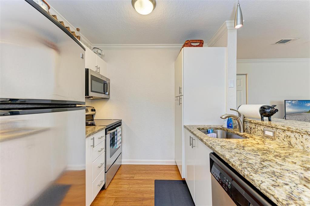 This beautiful one bedroom one bath ground floor unit is located in Central Park ll. It is a very short drive to downtown area including Marina Jack Marina and restaurant. The unit has a new kitchen including cabinets and counter tops along with stainless steel appliances. Painted recently. Wood laminate flooring in living area. New carpet in bedroom. Tile is in the bathroom. There is a screened lanai on the front of the unit with a storage room. There are not any designated parking spaces assigned to the units. There is plenty of parking. The mailboxes are located by the clubhouse. there is a community pool located at the clubhouse and also a kayak launch in the community. A short drive to downtown area,St. Armand's Circle,Lido Beach and Longboat Key. No Pets. No Smoking. No Trucks,Trailers,Motorcycles,RV's. MLS# A4651925