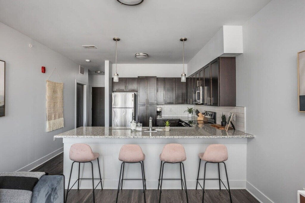Feel at home in this spacious 1-bedroom apartment in North Indy, located in the upscale Nora neighborhood. This apartment is curated to meet the needs of the modern traveler. This apartment features inviting living areas, a fully equipped kitchen, and a bathroom complete with toiletries. Enjoy the convenience of an in-unit washer and dryer, a smart TV with streaming apps, a TV in the living room, and complimentary coffee. Building amenities include a large outdoor pool and sundeck, a fitness center, a grilling area and fireplace, and bike storage. You will also have direct access to the Monon Trail. Please note that each unit has individualized elements of design and custom decorative features, so decor and layout may vary slightly from what you see in photos. Self-service garage parking options are available in several of the parking garages by the building for approximately $15-17 per day or $125 per month. Mid-stay cleanings and early check-in/late checkout are available for an additional fee. Located in the heart of Nora, you’ll have access to unique restaurants and endless shopping. Take a short drive to Broad Ripple, and then visit the Fashion Mall at Keystone, the premier luxury shopping destination for the Indianapolis metro area and Indiana. The walkability score is 65, the transit score is 31, and the bike score is 79. This is a smoke-free environment, and any sign of smoking is a violation of the stay agreement, which may result in immediate termination and recovery fees beginning at $500. Guests must agree to not disturb neighbors at all times during the stay and must observe quiet hours from 9pm-8am each day. The home is proactively monitored with decibel sensors for compliance with this noise policy. Check-in is at 4 PM, and check-out is at 11 AM, with a $75 per hour late fee. There is a $500 penalty for removing smoke detectors and a $200 penalty for lost key fobs. No outside guests are allowed without permission. One towel is provided per guest per stay. A valid photo ID is required to complete the booking. Guests traveling with an emotional support animal may be charged a pet fee, and the presence of emotional support animals can be declined. To abide by all legal requirements and HOA rules, you will be asked to provide a copy of your official government-issued photo ID, confirm your contact information, and pass through our verification portal; in some instances, you may be required to complete a criminal background check. Failure to provide these documents will result in a cancellation and denied entry. The minimum age requirement of the primary person booking should be 22 years old for out-of-town guests and 25 years old for local guests. No weapons or drugs are allowed, and police will be called for violating this rule. [SI]