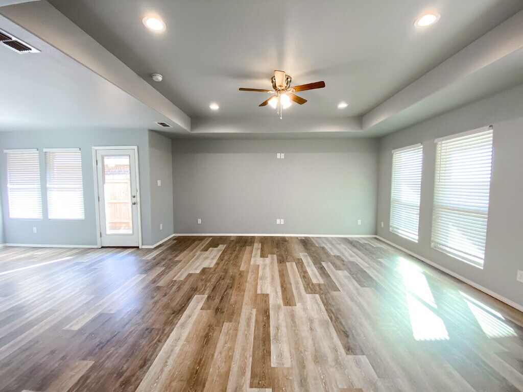 Welcome home! This 3-bedroom, 2-bath home with a 2-car garage is located in the Hill Valley HOA. The kitchen offers granite countertops, white cabinets, recessed lighting, and opens to a dining area. There is vinyl plank flooring throughout. The primary bedroom includes two closets and a private en-suite bathroom. Washer/dryer connections and a fenced backyard complete the home! Roommates Considered: 3 @ full months rent in deposit. Pet Considered: Up to 2 small pets (30 lbs) considered w/ a $300 deposit for each. Schools: Willow Bend Elementary, Terra Vista Middle School, & Frenship High School.