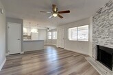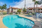 Stylish and move-in ready, this beautifully renovated second-floor two-bedroom condo offers modern comfort and convenience. The home features sleek wood-look laminate flooring throughout, creating a warm and cohesive feel. The upgraded kitchen shines with elegant stone countertops, custom cabinetry, and a full suite of crisp white appliances—perfect for everyday living and entertaining. The spacious primary bedroom is thoughtfully separated for added privacy and includes a ceiling fan for year-round comfort. The bathroom boasts a fully tiled shower/tub combination with a clean, contemporary finish. Enjoy resort-style community amenities including a sparkling pool and relaxing spa. Ideally situated and impeccably updated, this inviting condo is a fantastic place to call home—don’t miss the opportunity to make it yours! MLS ID 2775526