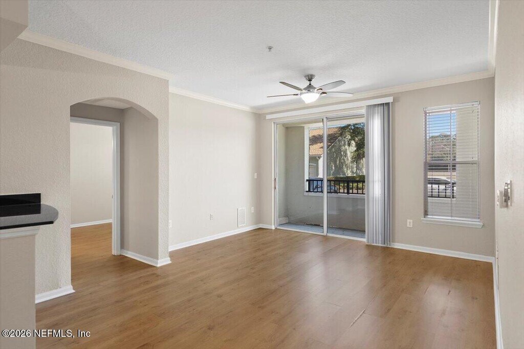 Welcome to your dream home in a stunning resort-style community,where luxury and convenience blend seamlessly! This immaculate condo boasts a range of outstanding amenities,including a sparkling pool,soothing hot tub,state-of-the-art fitness center,billiards room,inviting clubhouse,and scenic walking trails. With on-site management always ready to assist,you will enjoy a hassle-free living experience. Step inside to discover a meticulously maintained space featuring fresh paint and refreshed flooring that provide a modern touch. The chef's delight awaits with exquisite onyx granite countertops in the kitchen. Ample storage is ensured with spacious walk-in closets,while the open layout of the living and dining area creates a welcoming atmosphere perfect for entertaining or relaxing. Unwind on your private patio,where you can soak in the serene environment. Just minutes away from local shopping and dining options,everything you need is at your fingertips. Plus,with easy access to I-95,Butler Blvd,and St. Johns Town Center,commuting and exploring the area is a breeze. This property truly is the perfect place to call home. Don't miss your chance to experience resort-style living every day! MLS# 2129555