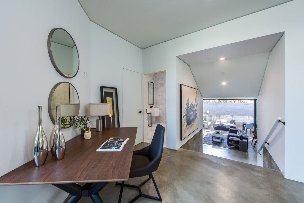 Experience refined West Hollywood living at 855 Hilldale, a striking 1-bedroom, 1.5-bath architectural residence located in the heart of the Norma Triangle. Designed with seamless indoor-outdoor flow, this award-winning home features dramatic floor-to-ceiling Fleetwood glass doors that open to a large private patio—perfect for entertaining or quiet relaxation. Built in 2017 and honored with the AIA Home of the Year Award, the residence showcases impeccable design with concrete floors, marble bathrooms, and custom finishes throughout. The open-concept living and dining area connects effortlessly to the chef’s kitchen, complete with high-end appliances and sleek, modern cabinetry. The primary suite offers a spa-like marble bath framed in black steel and a private patio for morning coffee or evening wind-downs. Additional features include in-unit laundry, a garage, smart home integration, premium fixtures, and high-end finishes. Available furnished or unfurnished with flexible short-term leasing options. Nestled on a quiet street just moments from Beverly Hills, Melrose Place, and the Sunset Strip, 855 Hilldale offers architectural integrity and modern luxury in one of Los Angeles’ most sought-after enclaves.