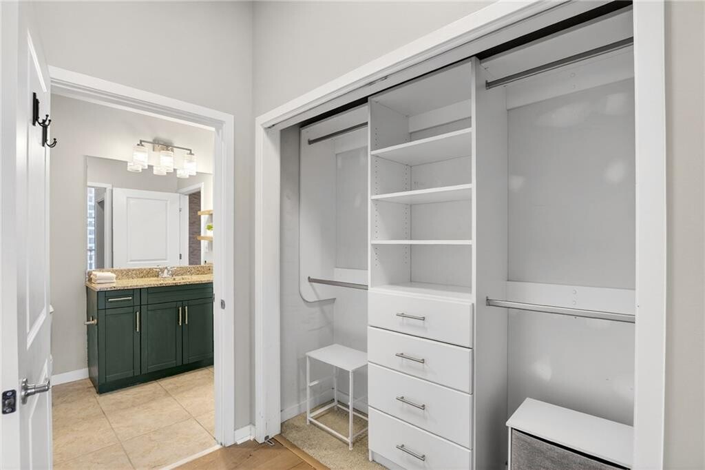 Experience the best of Midtown Atlanta living at Viewpoint — 855 Peachtree Street NE, Unit 1810. This recently renovated, vacant, and move-in ready two-bedroom residence (with one room that can flex as a den, home office, or guest suite) is perched on the 18th floor, offering sweeping skyline views through floor-to-ceiling windows. Inside, enjoy new hardwood floors, custom window shades, granite countertops, and a light gray split-face quartzite stacked stone accent wall that adds modern warmth and texture. Viewpoint is one of Midtown’s most desirable high-rises, offering 24/7 concierge service, a resort-style pool, fitness center, theatre room, resident lounges, conference space, and secured parking for peace of mind, including one dedicated space with an electric vehicle charging station. Enjoy unmatched walkability with Starbucks just next door and easy access to Midtown’s best — Whole Foods, Publix, Piedmont Park, The Beltline, Atlanta Botanical Garden, The Fox Theatre, MARTA, and Colony Square — plus endless restaurants from casual bites to fine dining. This is Midtown living at its finest.