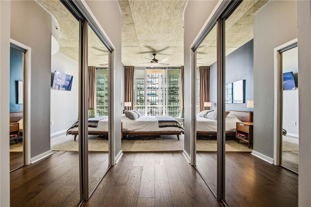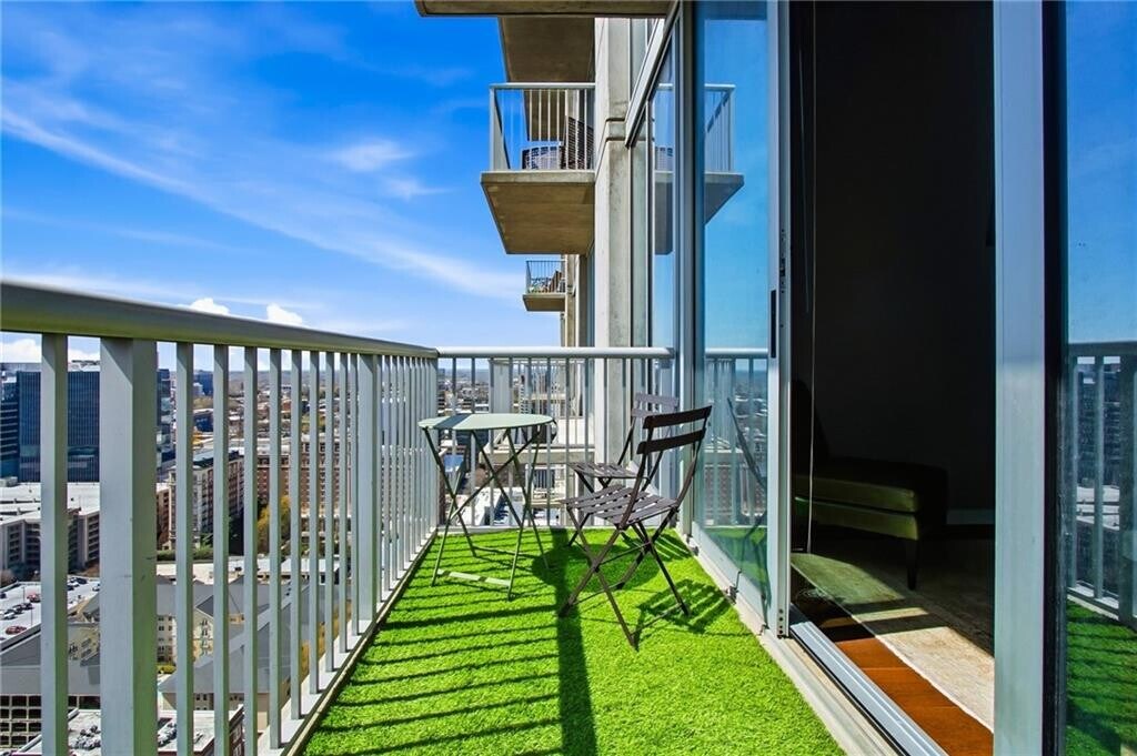 Perched on the 25th floor of the iconic Viewpoint building,this beautifully updated 2-bedroom,2.5-bathroom condo offers elevated Midtown living with sweeping southern exposure and abundant natural light. Inside,the home features hardwood floors throughout,creating a warm and cohesive flow across the living spaces. The updated kitchen is designed for both everyday living and entertaining,while the renovated primary bathroom adds a spa-like touch to the primary suite,complete with heated floors. A large laundry and utility closet provides excellent storage—an uncommon bonus in condo living. One of the home’s standout features is its two private patios,perfect for morning coffee or evening relaxation while enjoying the skyline views. The residence also includes covered,assigned parking for added convenience. Residents of Viewpoint enjoy a full suite of luxury amenities including a 24-hour concierge,saltwater pool,clubhouse,grill stations,business center,and catering kitchen—ideal for hosting gatherings or working from home. Located directly on Peachtree Street,the building also features Starbucks and several popular restaurants onsite,placing Midtown’s vibrant dining,shopping,and entertainment just steps from your door. Sophisticated,convenient,and perfectly positioned in the heart of Midtown—this is city living at its best. Residence can be rented furnished or unfurnished. MLS ID 7735674
