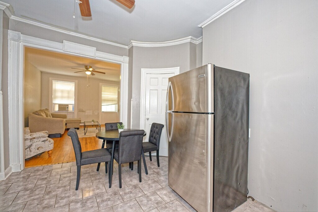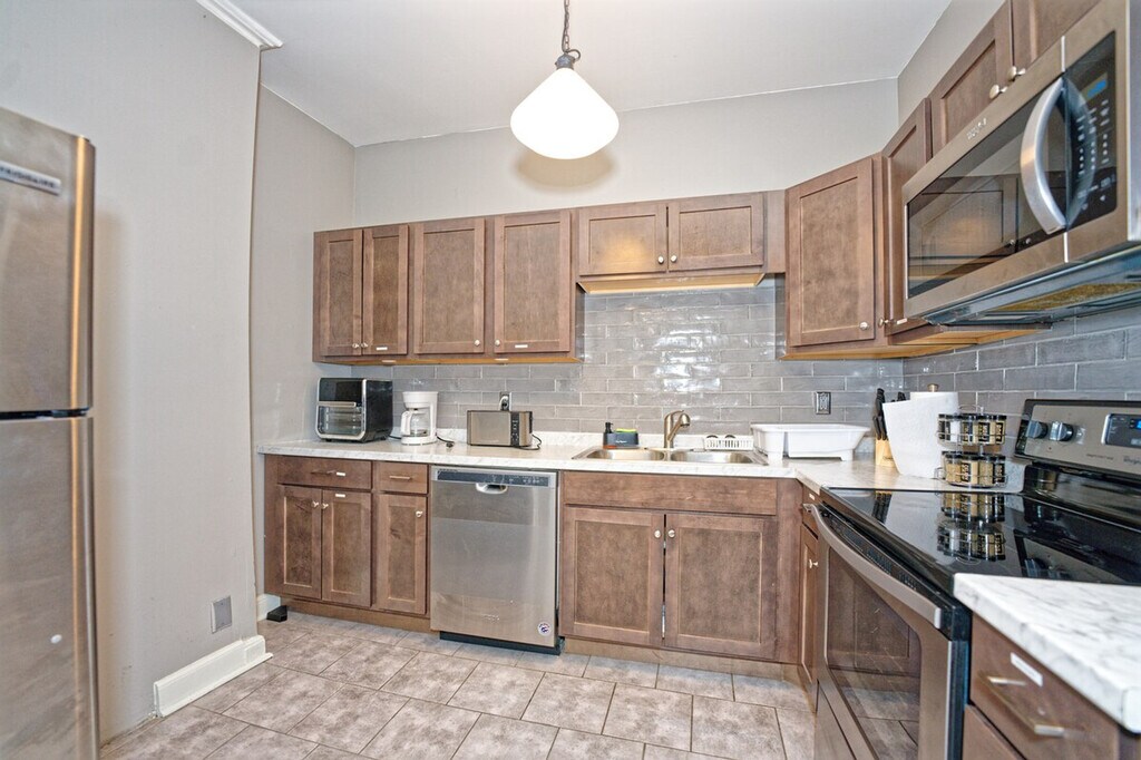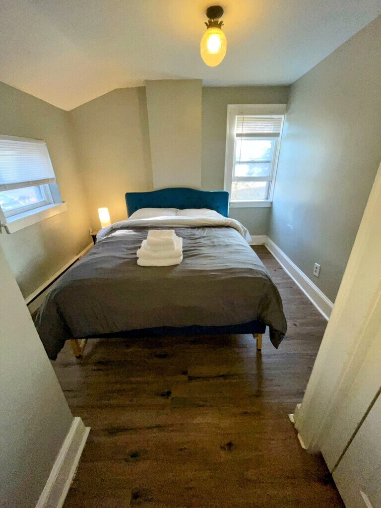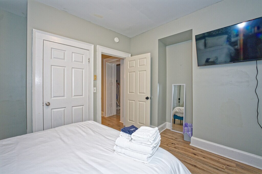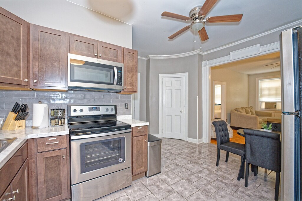 The advertised rate of $2,577/month is the lowest available price, based on a 1 month(s) stay with a move-in date of April 10, 2026. Rates vary depending on the duration of stay, season, and other parameters. For exact pricing and additional pricing components, please visit our website and enter your desired move-in and move-out dates. The rate is applicable when billed upfront; it can be higher if billed in multiple payments. Feel at home in this 3-bedroom apartment located on the 2nd floor of a renovated historic two-century-old building in a quiet neighborhood of Albany's Pastures. This apartment features a cozy gas fireplace in the living room, a 55" 4K Roku TV, a full kitchen with a dining table, a full bathroom with toiletries, plenty of closet space, front and back entrances, and access to a fenced backyard and private balcony. The bedrooms have 43" 1080p HDTVs with Roku, including Netflix, Hulu, Disney+, Paramount+, and Amazon Prime Video. The full kitchen is equipped with appliances, and an iron/ironing board and hair dryer are provided. A water filter pitcher and/or faucet is available for filtering tap water for drinking or cooking. Enjoy your privacy in a quiet neighborhood steps away from major Albany attractions, near Albany Medical Center, MVP Arena, Empire State Plaza, Library, Lark Street, State Offices, and courts. There is easy access to local and regional bus routes and highways (I-787, I-90 and I-87). Guests must be respectful of all other guests upstairs and surrounding neighbors. Quiet hours are from 10 PM to 8 AM. Absolutely no smoking of any kind is allowed on the premises (no tobacco, marijuana, or incense whatsoever). Please smoke off of the property. Violation of the smoking policy will result in a minimum $200 fine for noise violation and deep cleaning, and you will be asked to leave with no refund. Burning or vaping is not welcome. Absolutely no parties are allowed on or off premises. Violation of maximum occupancy is grounds for immediate eviction with no refund and an additional $50 fee per unregistered guest. A 24/7 noise monitoring device is present in each apartment for the quiet enjoyment of all guests in the building. Includes a dedicated workspace and high-speed Wi-Fi. [SI]