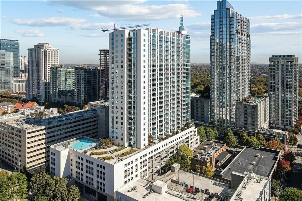 Discover modern city living in this spacious studio apartment at the highly sought-after Spire Midtown Condominiums. This rental offers breathtaking north-facing skyline views of Midtown. The well-appointed kitchen features granite countertops,tile backsplash,abundant cabinetry,and a moveable island,making it easy to cook and entertain. Despite being a studio,the smart layout provides ample space for a king-size bed,dining area,and full living room setup. A full-size washer and dryer are conveniently located near the bathroom. There is a large covered balcony off the living room. This studio has floor to ceiling windows,tall ceilings,hardwood floors,and a modern urban flare with cement ceilings. Residents of Spire enjoy luxury amenities including a 24-hour concierge,multiple fitness centers,a resort-style saltwater pool,outdoor grilling stations,and a stylish club room. This unit comes with the a deeded covered parking spaces in a secure garage. The location is unbeatable—steps from MARTA transit,dedicated bike lanes,and countless Midtown restaurants,shops,and cafes. Piedmont Park is just minutes away,and you can reach the airport or downtown without needing a car. Perfect for anyone seeking affordable luxury,unbeatable convenience,and a vibrant lifestyle in the heart of Atlanta.