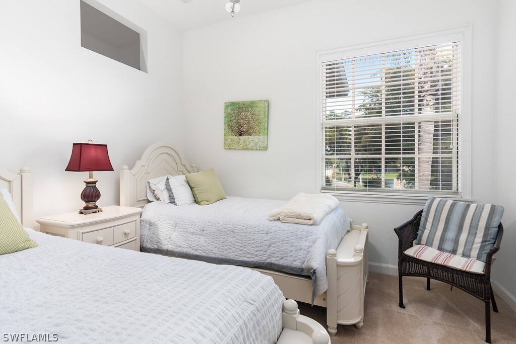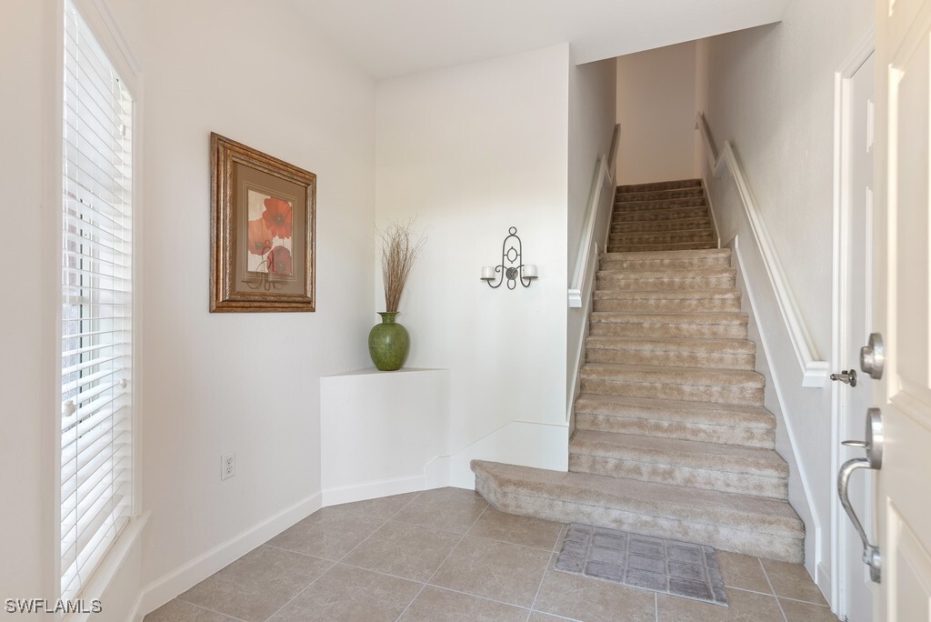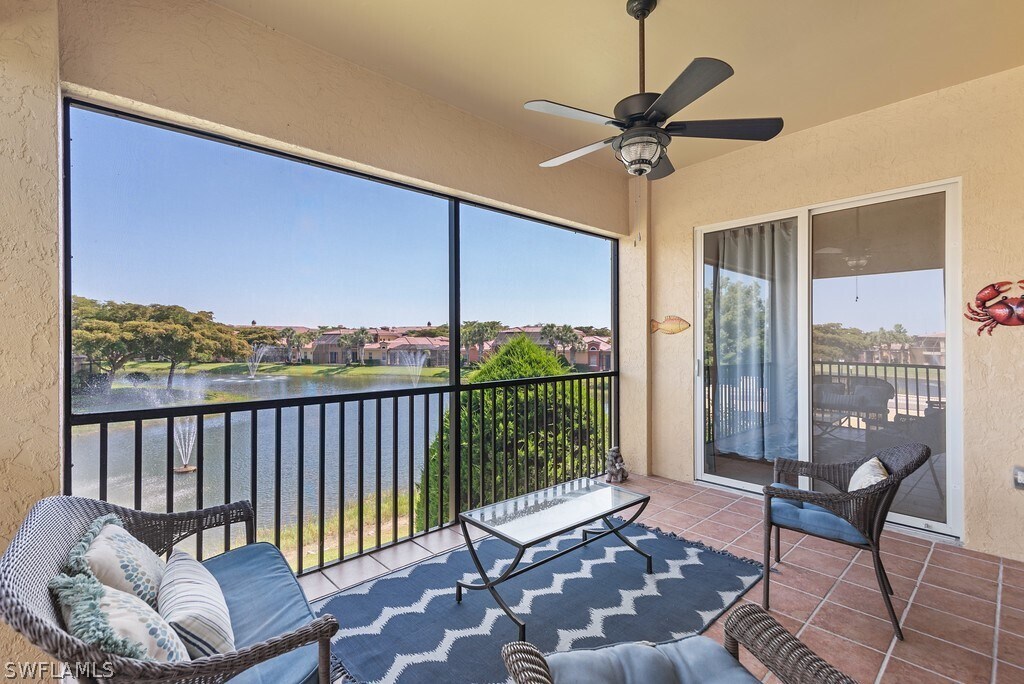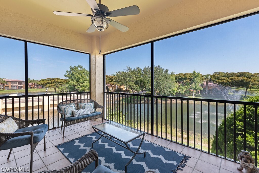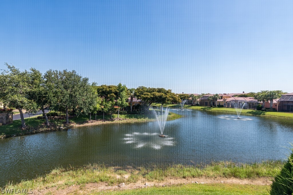 !!!! Available Off Season 2026 !!!! Serenity Awaits in this beautiful 2 bedroom + Den,2 bathroom turnkey furnished spectacular condo. Scenic long lake fountain views to complete your tropical escape. 2nd floor highly desired coach home,1660 sq ft ready for your immediate occupancy. Guard gated entry,courtyard entrance,single car garage,granite countertops,two bar kitchen that is fully appointed with all of your kitchen culinary essentials,washer & dryer,beautifully appointed rooms and tropical décor throughout. This home is just around the corner from fabulous Coconut Point Mall shopping and dining. Close to 75 and 41 for a quick drive south to neighboring Naples or Ft Myers. Private and tranquil a must for someone looking for a tropical escape in the middle of it all.
