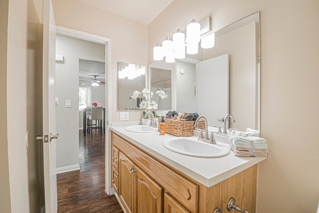 Fabulous Two Bedroom with Central Air, Plush Carpets, Stainless Steel Appliances, Pool, BBQ Area, On-Site Laundry and TWO Included Parking Spaces ~ In Vibrant La Habra! Key Features: ~ Perfectly Situated: Meticulously maintained building, surrounded by lush green spaces. ~ Bright & Airy: Natural light showcases the hardwood-style floors and creates an inviting atmosphere. ~ Private Balcony: Relax or entertain in your outdoor space. ~ Temperature Control: Central Heat and A/C keep you comfy all year. ~ Modern Kitchen: Granite countertops and lovely backsplash, hardwood cabinets, and stainless steel appliances. ~ Dining in Style: Dine in a delightful area by a large sunny window, with ceiling fan overhead. ~ Carpeted Bedrooms: Bright and airy, with dreamy-soft plush carpeting and generous closets. ~ Luxurious Bathrooms: Each with tub with a shower option, vanity cabinet, and a mirrored medicine cabinet. ~ Convenient Laundry: Simplify your laundry routine with easy access to on-site facilities. ~ Parking: Benefit from the convenience of two parking spaces. ~ Pool Access: Cool off in the sparkling community pool. ~ Outdoor Spaces: Enjoy use of a BBQ area for delicious meals. ~ Pet-Friendly Policy: Minimal deposit and monthly pet rent for small pets. ~ Ideal Location: Enjoy suburban comfort and convenience in the La Habra area, where tree-lined streets, a plethora of nearby shopping, and easy access to both Orange and Los Angeles Counties create an ideal Southern California lifestyle. Don't miss out on the opportunity! Available for an immediate move-in. Call to schedule a viewing today! LEASE TERMS: One Year Lease Photos may not reflect the exact available unit. Unit comes UNFURNISHED. Staged photos are to offer ideas for the space. Availability is not guaranteed—please verify all details. Square Footage is approximate. Showings may not be 1-on-1. Listed pricing and special offers are only valid for new residents. Pricing and availability are subject to change without notice and may vary between similar units. Red Oak does not warrant or represent that image renderings on this website are an accurate representation of every floor plan available at the Property. Floor plans may vary unit by unit and by location at the Property. Please contact the Leasing Office to schedule a tour of the Property and the particular unit you are interested in. Pricing and availability are subject to change at any time. **All applicants receive equal consideration; we follow all Fair Housing laws.*