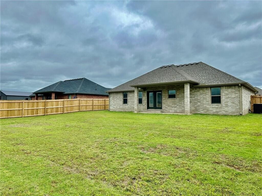 New all-brick home built in 2024 featuring 1,400 SF, 3 bedrooms, 2 bathrooms, and a 2-car garage. Interior highlights include granite countertops, premium vinyl plank flooring, a cozy fireplace, and a split-bedroom layout. Enjoy a large covered patio with scenic views, a fenced backyard, and fully sodded yard. Located in the desirable Prairie Grove School District.**NO PETS** MLS# 1323488