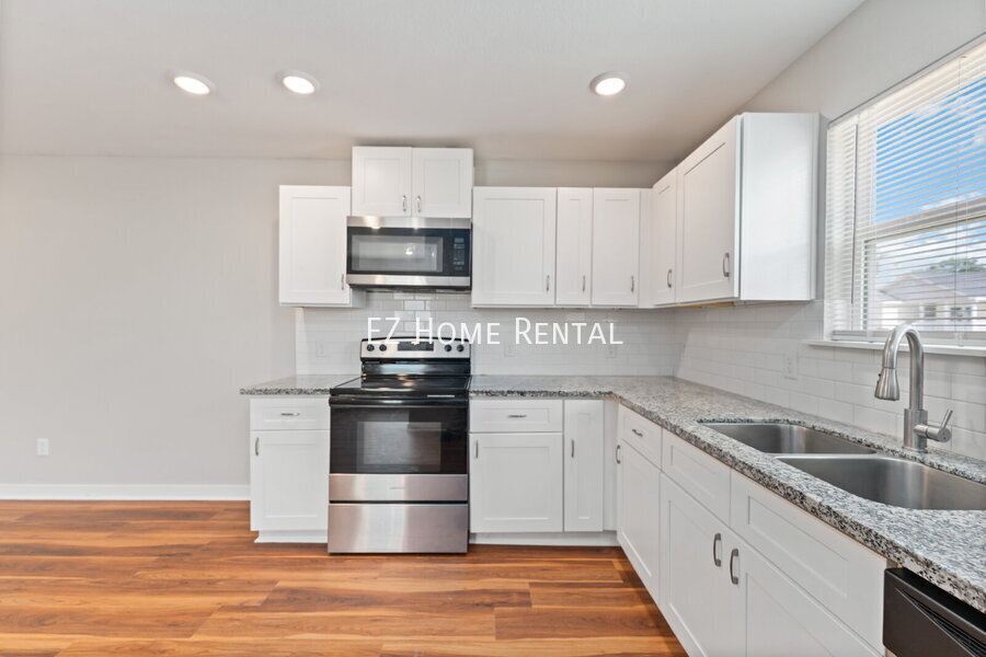 This recently constructed home features 3 bedrooms and 2 full baths, offering plenty of space for comfort and functionality. The open-concept living room and kitchen create an inviting atmosphere perfect for entertaining or family gatherings. Inside, you’ll enjoy sleek granite countertops, elegant laminate flooring, and recessed lighting that enhances the home’s bright, contemporary feel. Ceiling fans in every room ensure year-round comfort, while the thoughtful design adds both style and practicality. This home comes fully equipped with all the essentials — including a washer, dryer, and refrigerator — making your move effortless and convenient. With its combination of modern finishes, spacious layout, and immediate availability, this property is the perfect place to call home! The property also includes a fenced backyard and private driveway. Conveniently located near I-59 and Downtown, easy commuting. EZ qualifications! Qualified renters can skip the traditional security deposit—ask us how! Schedule your self-showing today!Vinyl Plank Flooring