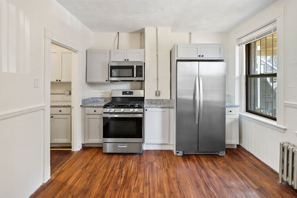 Newly Renovated with Central A/C,laundry,and deck. Set in one of Mission Hill's most convenient locations,this renovated three-bedroom,two-bath apartment has the big three,central A/C,in-unit laundry,and a private back deck and a bonus dishwasher! Inside,the apartment features an updated kitchen with a dishwasher,microwave,stove,and refrigerator,opening into a bright living area with hardwood floors throughout. Both bathrooms are refreshed with modern tile and fixtures,and the layout offers well-proportioned bedrooms with good light. With the Green Line right outside your door,Longwood Medical,Northeastern,Wentworth,and MassArt are all minutes away. Restaurants,shops,and everyday essentials line the avenue,making this an unbeatable spot. In the center of everything! Students okay! One or more photos was virtually staged. MLS# 73442653