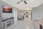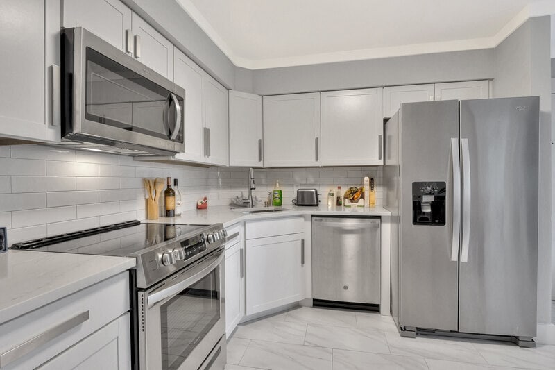 Available Feb 1, 2026. Our furnished annual rental features over 600 square feet of completely renovated space. The kitchen has a high end stainless appliance package, quartz counter tops, subway backsplash and modern pulls on the cabinets. This is a first floor condo with a cozy screened and covered lanai. The bedroom has a Queen bed and a totally upgraded modern en suite bathroom with a dual sink vanity and a shower and tub combo. This is by far the most upgraded rental available at this price point in Bonita Springs! Our property is set up for self showings so you can view this wonderful property at your convivence and is managed professionally by Mike Z Rentals. All rent payments are made online and there is a portal for applying, questions, payments and maintenance requests. Book your appointment at your convenience today! This condo is located in the Sanctuary at Imperial River. The onsite amenities include a clubhouse with a fitness center, a heated pool and spa, and Tennis and Racquet Ball court. The Small Print: There is a $40 per person rental office application fee and a $100 rental office application processing fee if approved. This property has a 2 part approval process. The owner/mgmt company approves the tenants to lease the property and this includes a background and credit check, proof of income, etc. Secondly this property is located in a restricted HOA and all tenants (not children) must be approved by the HOA prior to commencement of a lease. It is the tenants sole responsibility to hand in any and all applicable HOA paperwork to the HOA and to give evidence of approval. Please allow a minimum of 21 days to process the HOA paperwork. The HOA has a $100 per applicant fee. No Pets PER HOA Rules and Regulations. 2 Cars maximum permitted. Maximum occupancy of 2 People. No commercial vehicles. This home is listed for rent by The Agency Naples and the property is managed by Mike Z Rentals