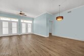 RENT WITH OPTION TO PURCHASE!! Welcome to Island Reserve! A gated community offering resort-style living just minutes from the beach! This spacious 2-bedroom, 2.5-bath condo is a GROUND FLOOR END UNIT with no stairs and EASY ACCESS to the parking garage for added convenience. Enjoy FRESH INTERIOR PAINT throughout and beautiful natural light pouring in from the large French doors that open to your PRIVATE PATIO - perfect for relaxing or entertaining. The kitchen features granite countertops, stainless steel appliances, and a breakfast bar that opens to the dining and living space with HIGH CEILINGS and wood flooring! The split bedroom layout offers privacy, with each bedroom featuring its own en-suite bath and walk-in closet. The primary suite includes a soaking tub, separate shower, and dual vanities. A guest powder room and laundry area complete the layout. Island Reserve amenities include: -Lagoon-style pool with waterfall -Fitness center - Indoor basketball court - Beautifully landscaped grounds -Game room.