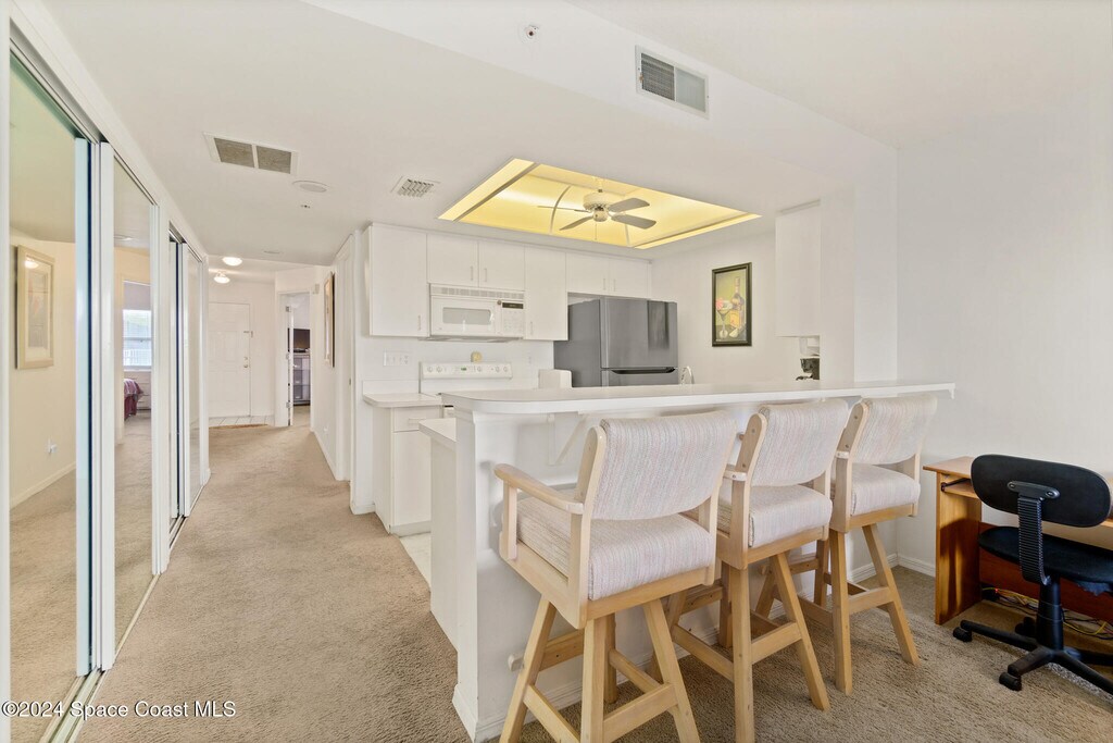 Available NOW through 12/31/2025,also available in April 2026. This gorgeous DIRECT OCEAN VIEW condo is available NOW & fully FURNISHED. 1 bedroom,2 full baths,4th floor unit in the prestigious GATED Ocean Oaks community. Fully renovated,open floor plan w/tile throughout. Spacious tiled balcony is the perfect place to relax in the ocean breeze. Custom kitchen boasts stainless steel appliances,quartz countertops,backsplash & breakfast bar. Living room has two murphy beds w/twin mattresses. Community features private BEACH access,POOL & spa,tennis & pickleball courts,exercise room w/sauna & car wash area. Fantastic location to watch the ROCKET launches & cruise ships! Conveniently located near SR-528,Jetty Park,the Pier,shopping & dining,25 min to Kennedy Space Center,NASA,SpaceX,Blue Origin,45 min to Orlando airport & area attractions. Rent includes electric (up to $50/month),water,cable,internet & covered parking. No pets and no smoking.