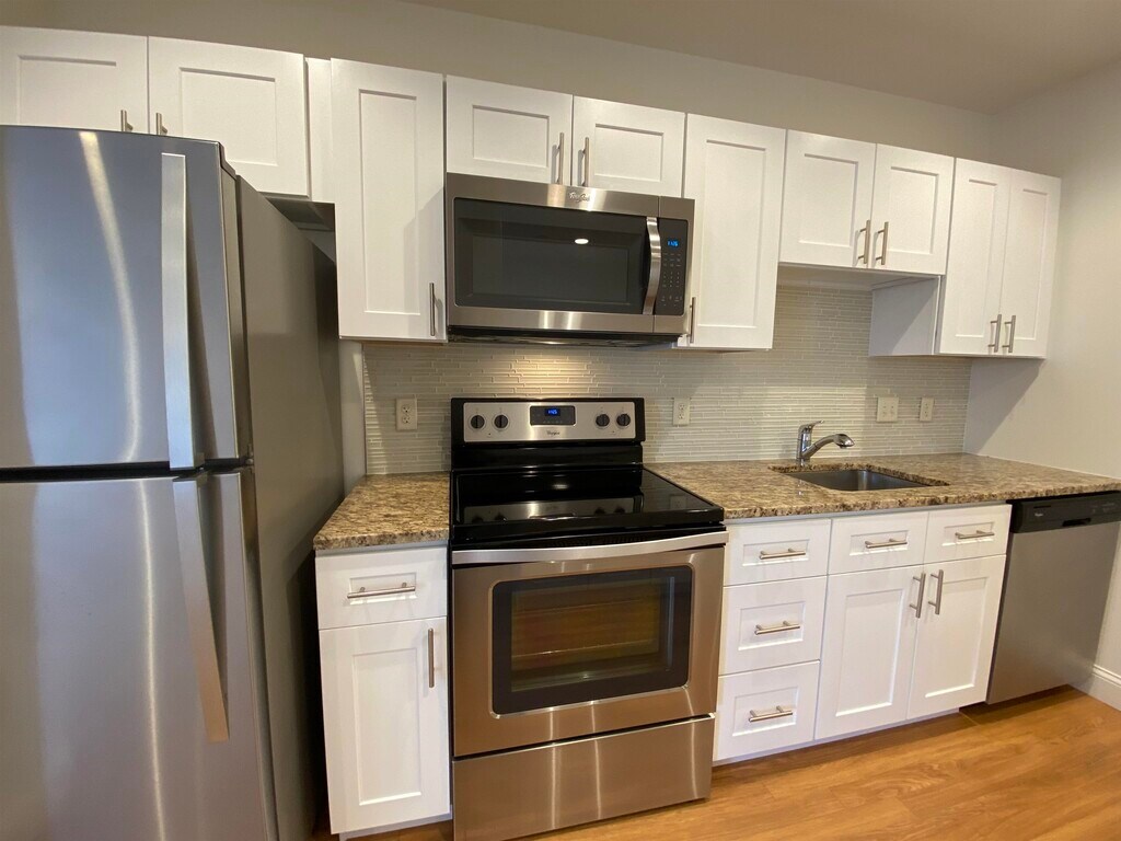 Manchester's Best downtown address. 875 Elm St Apts Manchester, NH Features: 5th floor apartment with Hanover Street view Cats and dogs allowed. Breed restrictions apply. Washer/dryer in apt Stainless steel Energy Star appliances including dishwasher and microwave Open concept kitchens with granite counter tops and over sized breakfast bar Central air conditioning and heat Sunny tall windows Carpeted bedrooms and wood flooring in kitchens and living rooms 9+ foot ceilings Residents’ lounge Operable windows Outdoor private terraces and grilling area Covered garage parking w/ EV charging station Bike storage Large secure storage lockers Fully equipped 24-hr fitness center 24 Hour Emergency Maintenance New residents are not required to pay a security deposit. Broker/Owner. MLS# 5071585