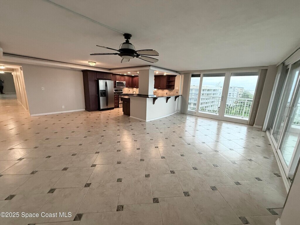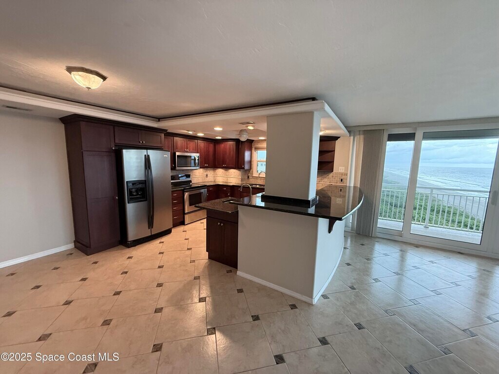 Enjoy breathtaking ocean views from this 7th-floor,2 bed/2 bath northeast corner oceanfront condo featuring a large wraparound balcony perfect for sunrises and sea breezes. Inside,you'll find tiled floors throughout,a spacious living area,and a kitchen with granite countertops and stainless steel appliances. The master suite includes a private bath currently being updated for a fresh,modern look. Hurricane shutters provide added security. This well-maintained condominium offers resort-style amenities,including a large swimming pool,direct beach access,and a recreation room. Prime location close to shopping,dining,and entertainmentcoastal living at its finest! Condo has 1 car garage. Bathroom mirror and wine cooler to be installed