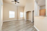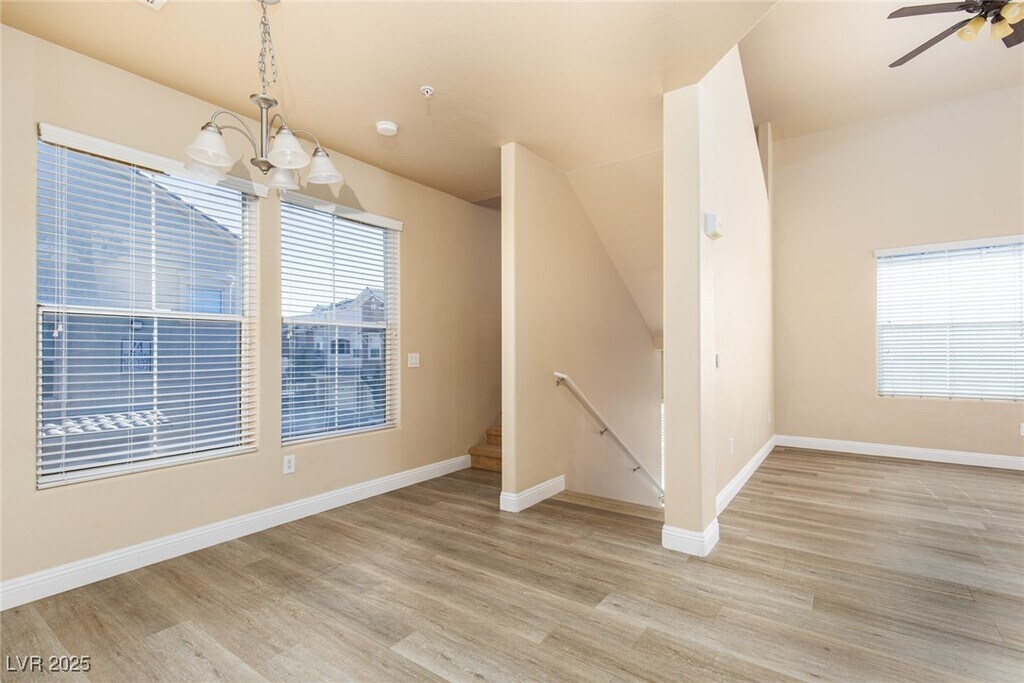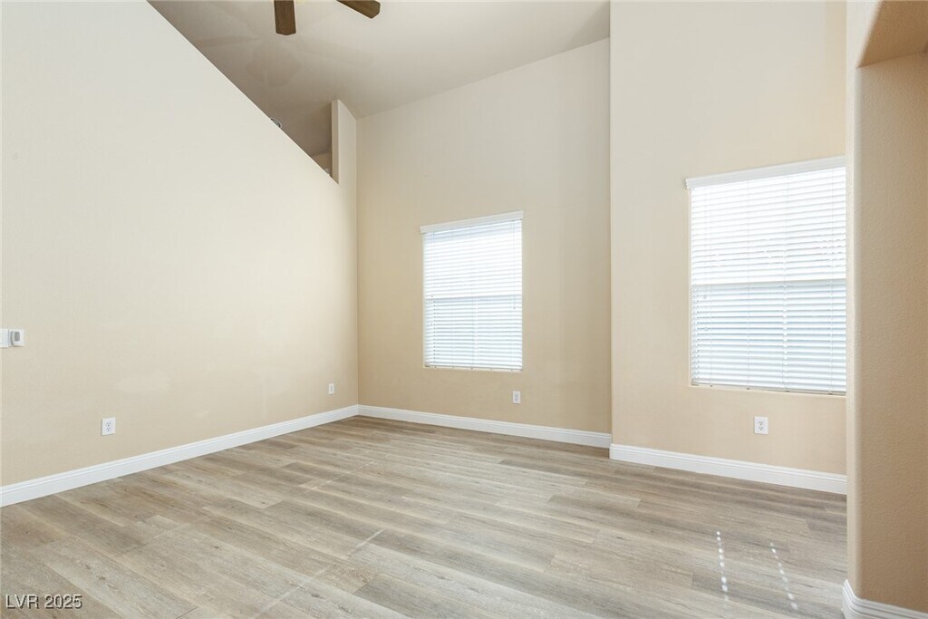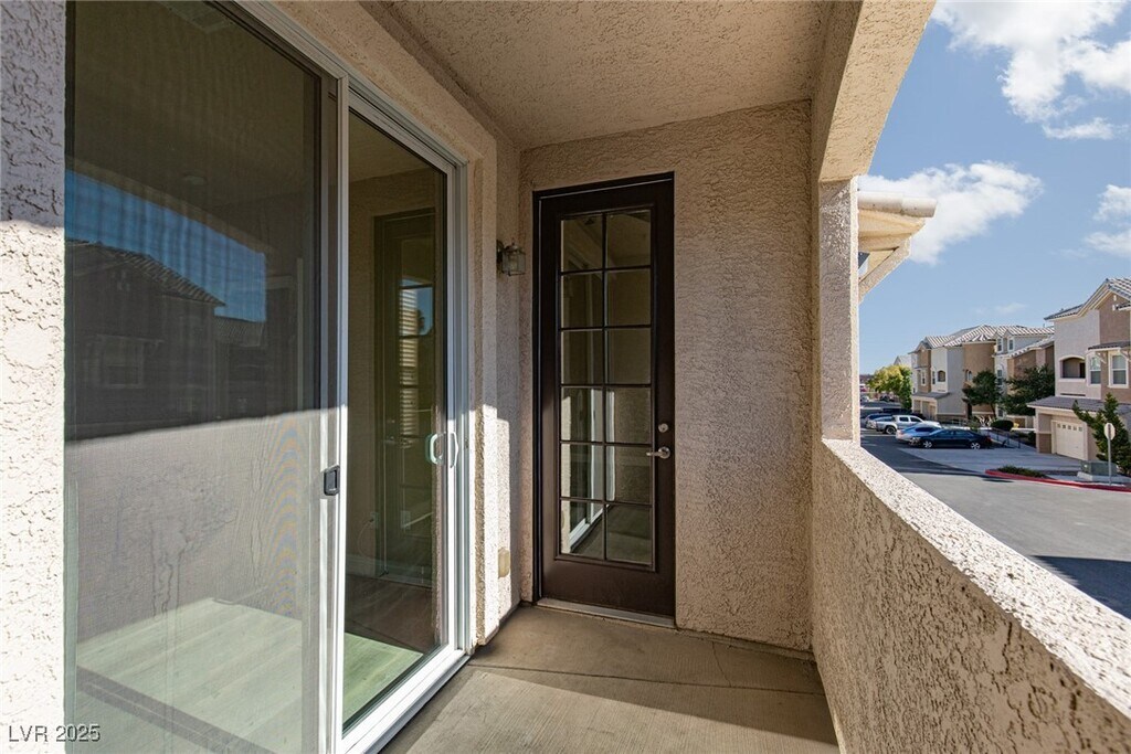 This two-story condo is anything but average, with 1,666 SF of living space it features an open floor plan with soaring vaulted ceilings and tons of natural light. Neutral tones complement upgraded stainless LG appliances and a Nest thermostat, creating a modern and inviting atmosphere. Enjoy private balconies off both the living room and the primary bedroom. A generous loft provides flexible living space and can easily be converted into an additional bedroom, complete with a large walk-in closet. The impressive kitchen offers ample cabinet and counter space, while a separate laundry room adds even more storage. This unique property also includes a spacious two-car garage plus additional driveway parking. Located within a gated community, residents enjoy resort-style amenities including a pool, spa, fitness center and recreation room. Ideally situated next to the new Durango Casino and Costco, with easy access to IKEA, freeways, schools, shopping, and dining.