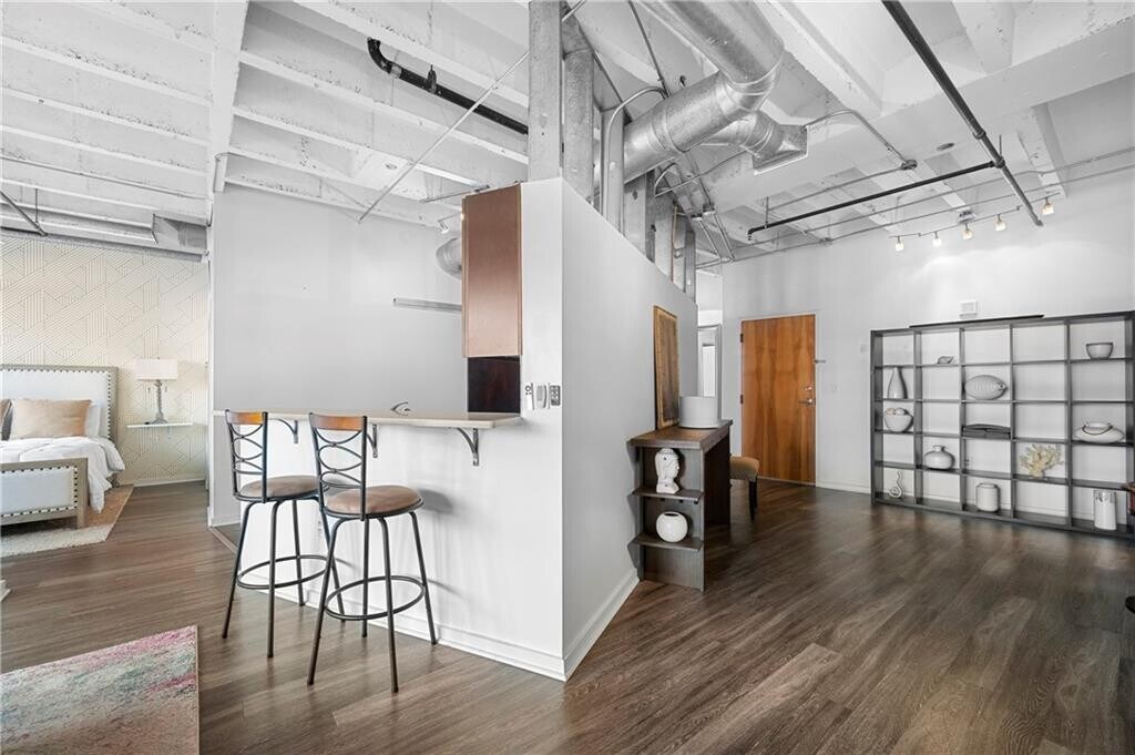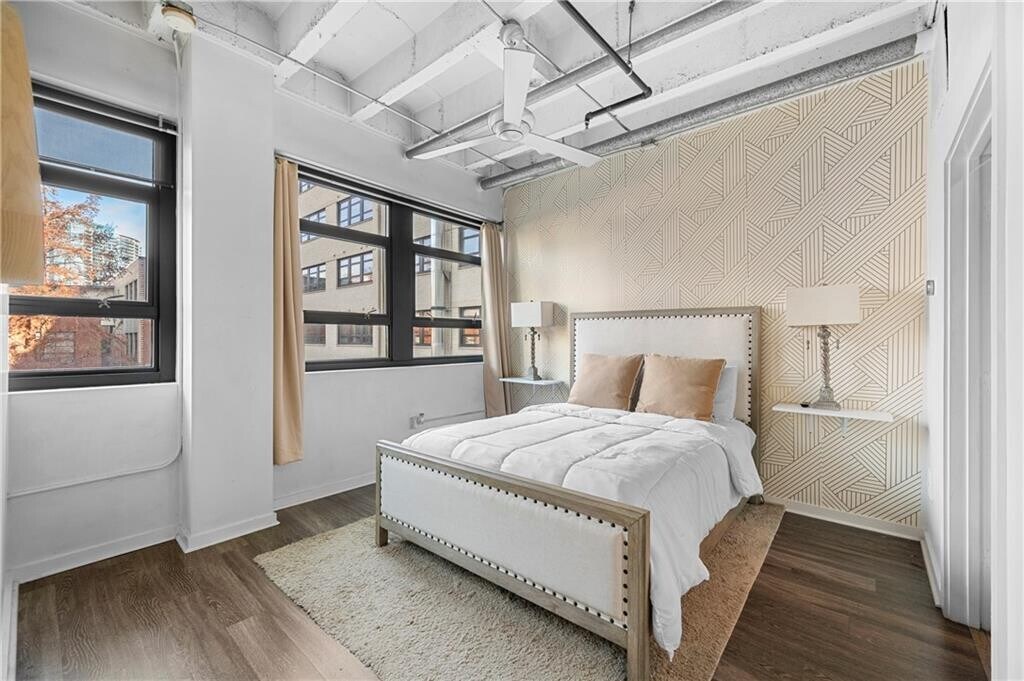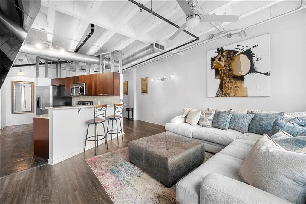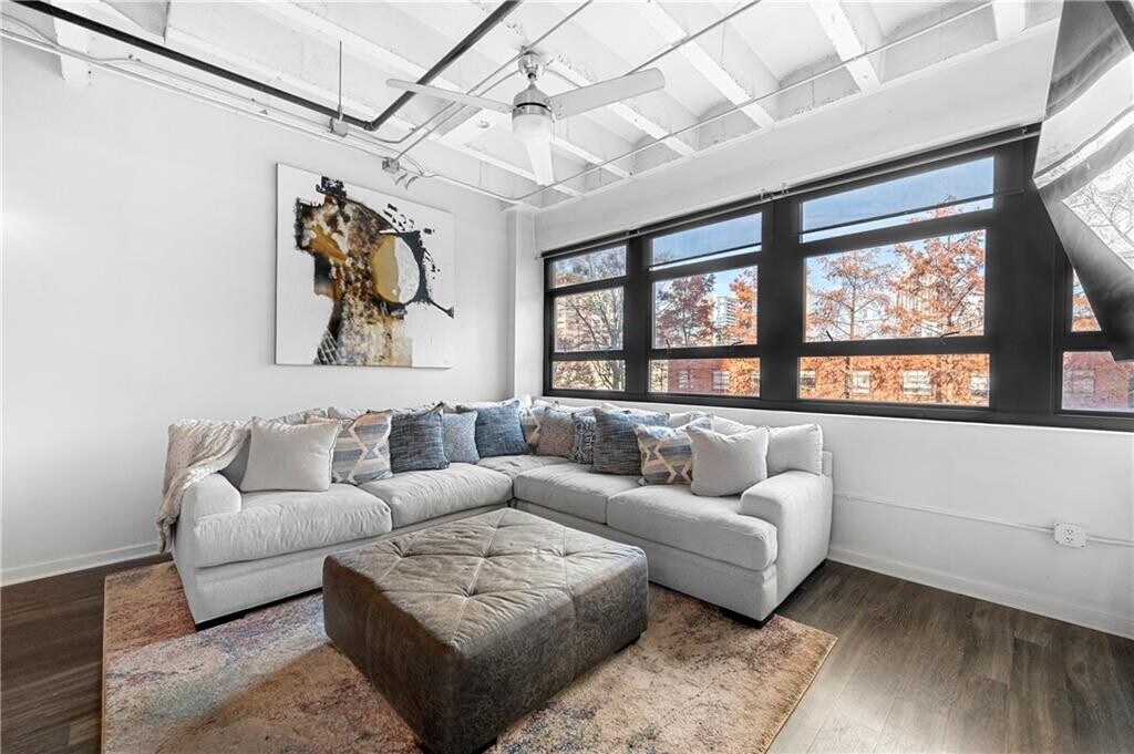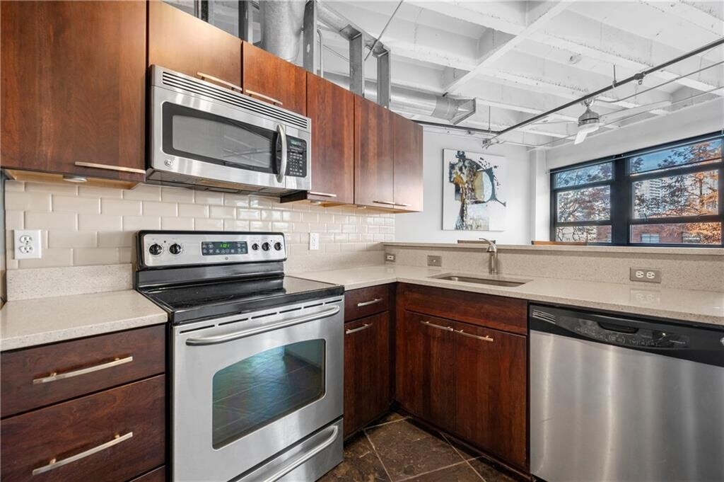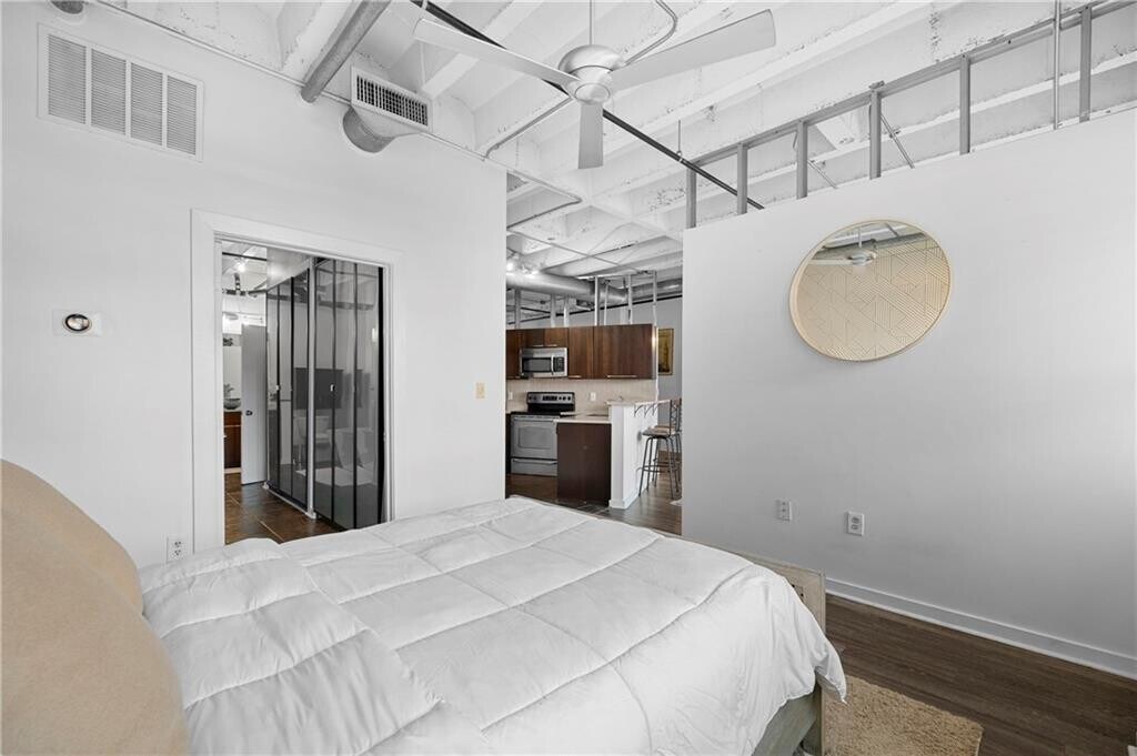 This completely renovated modern loft is located in the heart of Midtown. This bright open concept unit features exposed brick and beams,stunning updated chef's kitchen,large island for entertaining,quartz counters,stainless steel appliances,a beautiful renovated bath,updated light fixtures,and private bedroom suite with modern style barn doors. The bathroom and bedroom are conveniently joined by a large walk in closet and laundry area. Come experience all that Midtown has to offer with a variety of restaurants,MARTA,Piedmont Park and local entertainment all within walking distance. Assigned garage parking is included. Building has a 24-hour concierge,beautiful pool and fitness center. Guest parking is on 7th Street on the side of the building. Per HOA,no pets are allowed for rentals.