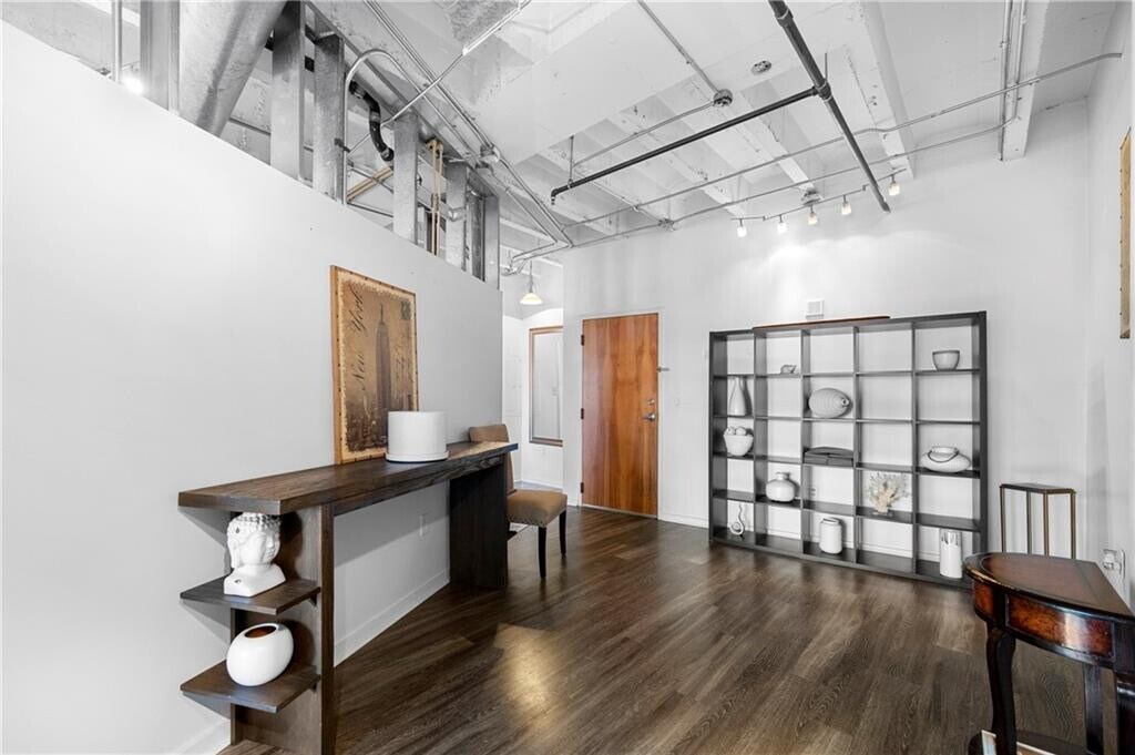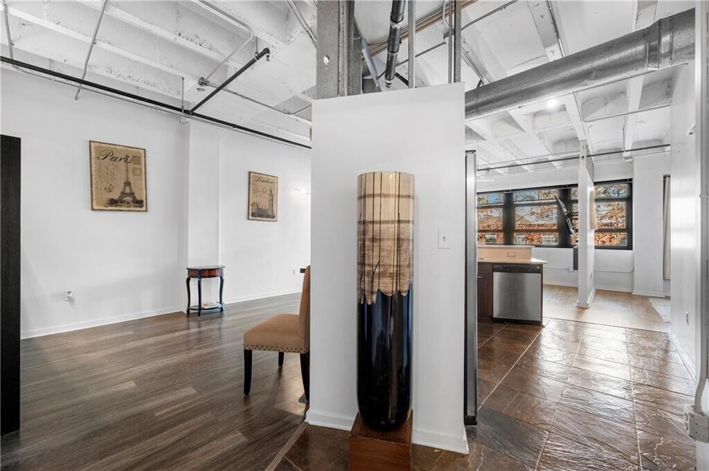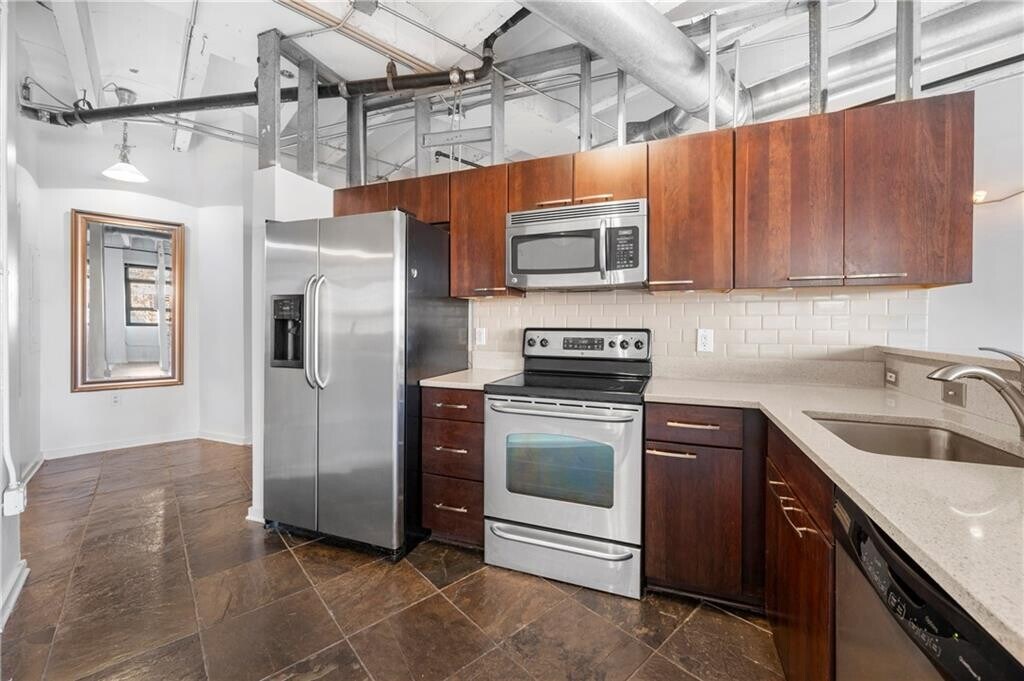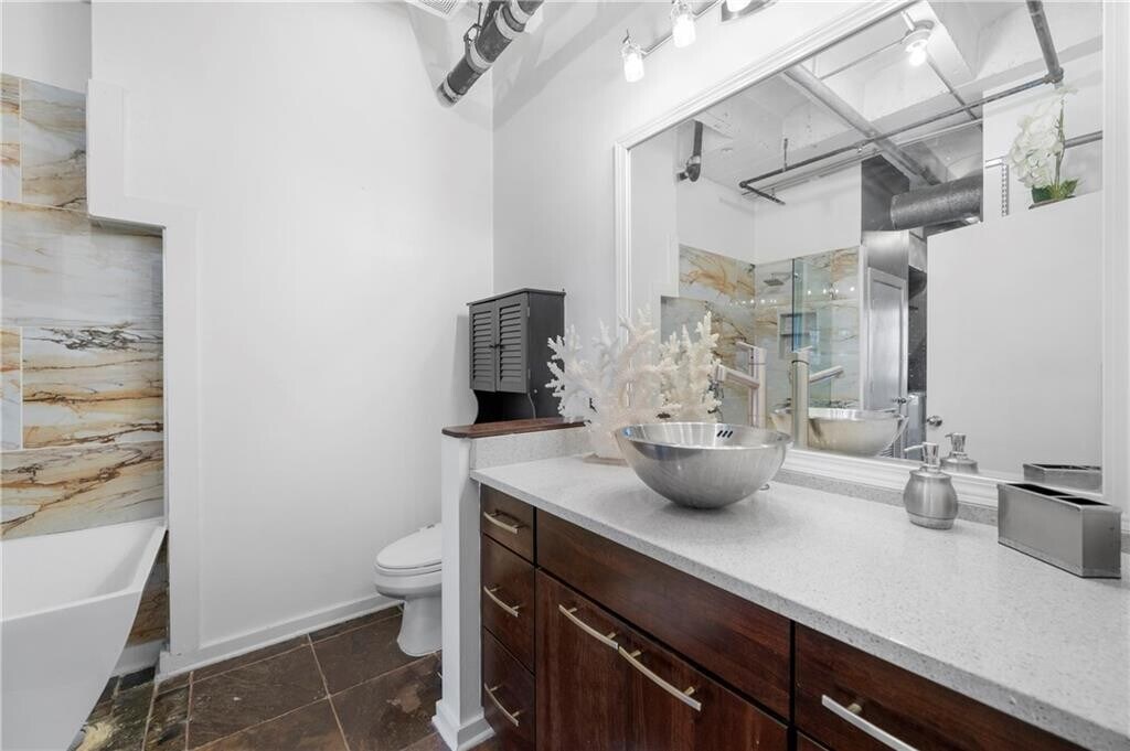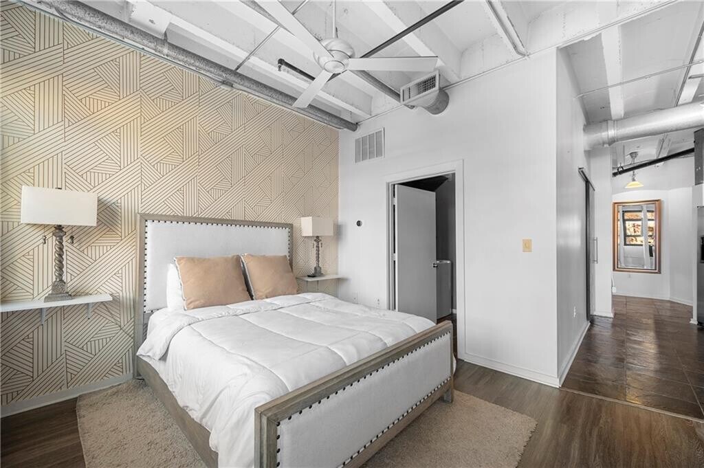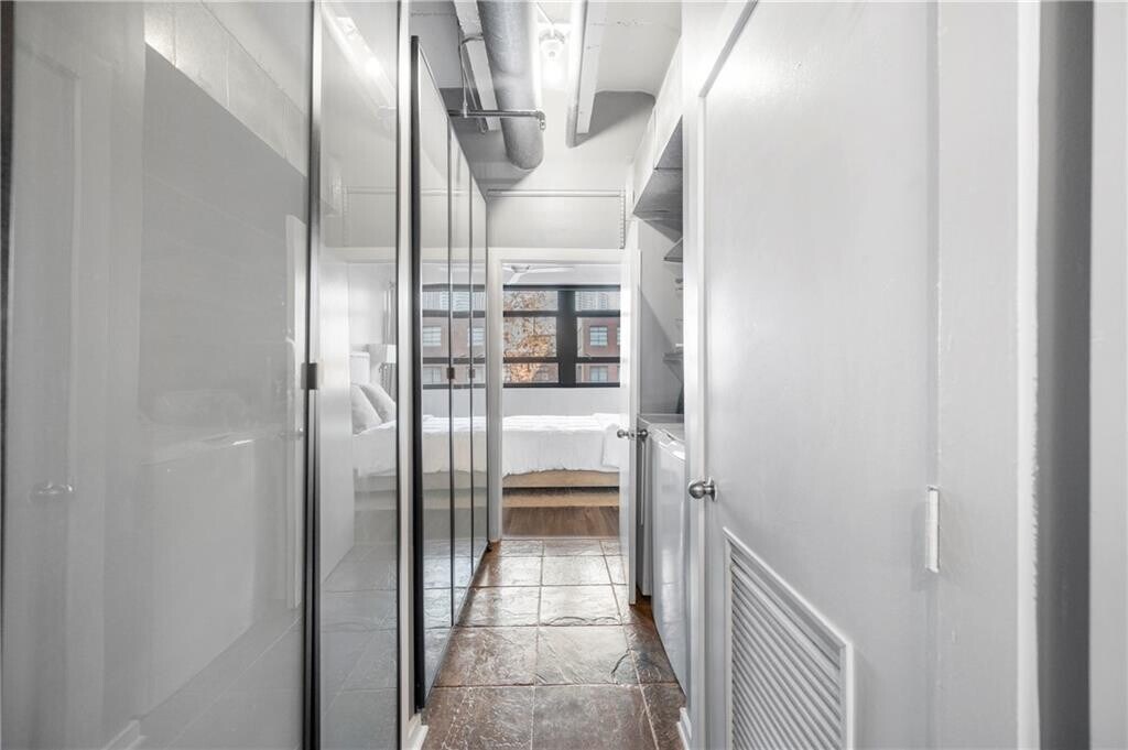 This completely renovated modern loft is located in the heart of Midtown. This bright open concept unit features exposed brick and beams,stunning updated chef's kitchen,large island for entertaining,quartz counters,stainless steel appliances,a beautiful renovated bath,updated light fixtures,and private bedroom suite with modern style barn doors. The bathroom and bedroom are conveniently joined by a large walk in closet and laundry area. Come experience all that Midtown has to offer with a variety of restaurants,MARTA,Piedmont Park and local entertainment all within walking distance. Assigned garage parking is included. Building has a 24-hour concierge,beautiful pool and fitness center. Guest parking is on 7th Street on the side of the building. Per HOA,no pets are allowed for rentals.