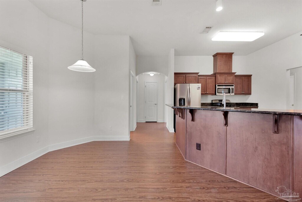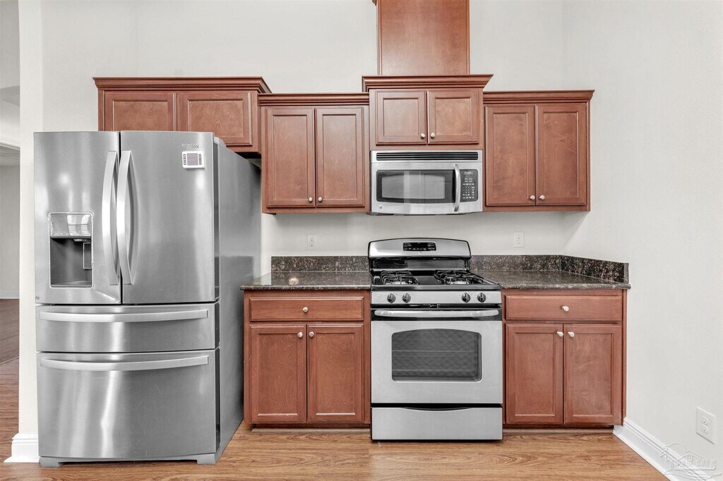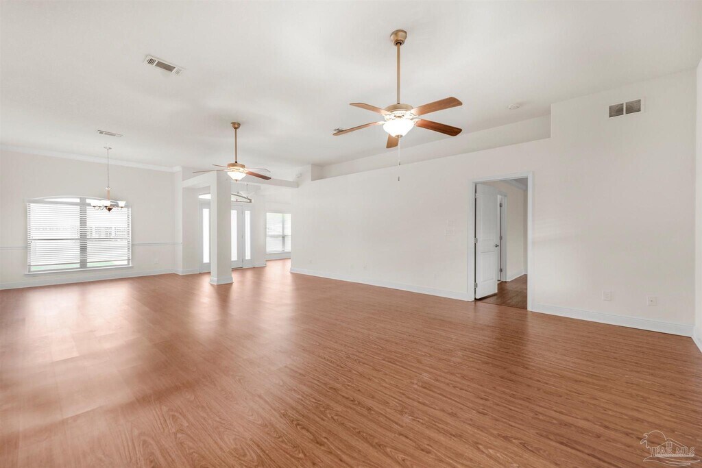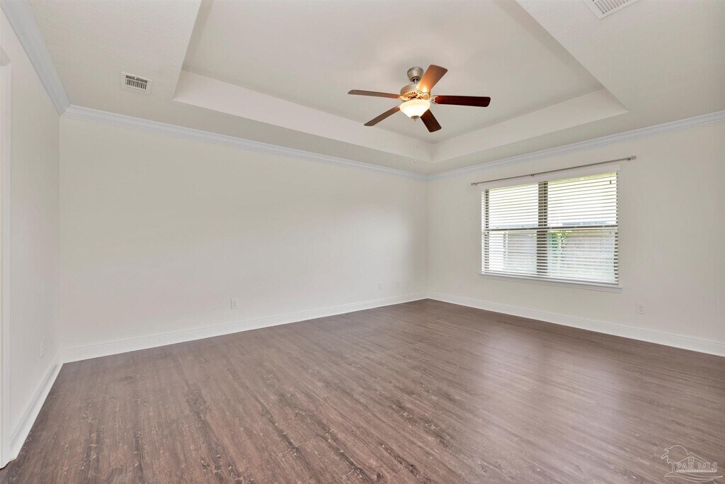Welcome home to this beautifully designed 4-bedroom,3-full-bathroom stunner that checks all the boxes! From the moment you step inside,you’ll love the soaring ceilings,LVP flooring throughout,and the bright,open floor plan that makes everyday living and entertaining a breeze. The spacious kitchen is the heart of the home,overlooking the great room and featuring stainless steel appliances,a gas range,and a pantry with plenty of storage. Need a work-from-home setup or bonus space? The office/flex room is ready to adapt to your lifestyle. The primary suite is a true retreat with room to spread out and direct access to the covered back porch. The ensuite bath offers a garden tub,separate shower,dual vanities,a private toilet room,and two oversized closets—talk about space! Three additional guest bedrooms are perfectly sized for comfort and storage,with one bedroom tucked away with its own dedicated bathroom,making it ideal for guests or older children. Step outside and enjoy the covered back patio and privacy-fenced backyard,perfect for relaxing evenings or entertaining friends and family. Prime location just minutes from NAS Pensacola,downtown,shopping,dining,schools,and more! Pets welcome with owner approval (sorry,no cats) Such a great layout in a fantastic location—this one is a must-see!