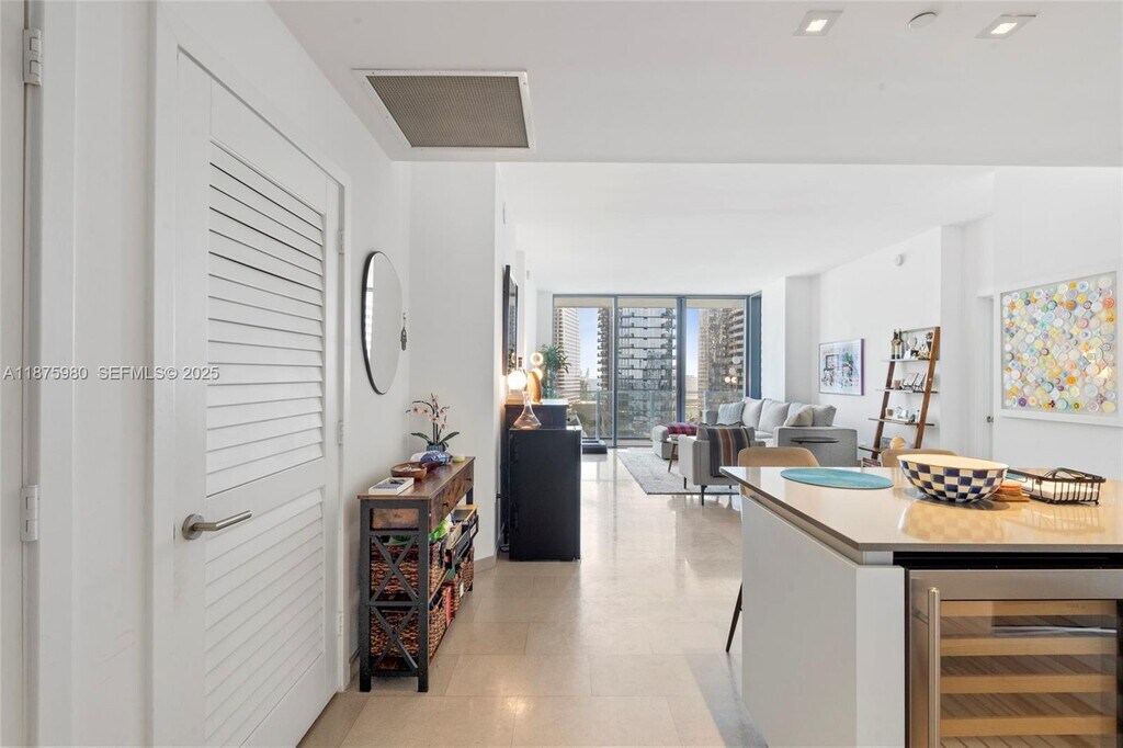 LIVE + WORK + PLAY at RISE at Brickell City Centre. This modern 1 bedroom, 1.5-bathroom residence offers a generous open floor plan with 10’ high ceilings, floor-to-ceiling windows, and beautiful natural light throughout. The contemporary kitchen features quartz countertops, premium Italian cabinetry, Bosch appliances, and a built-in wine cooler. Enjoy scenic cityscape views along with partial, unobstructed water views from your private balcony. The spacious primary suite includes a large walk-in closet and a spa-inspired bathroom with double vanities and a glass-enclosed shower. Additional features include marble flooring, an in-unit washer/dryer, and one assigned self-parking space. Rise is a full-service luxury tower with exceptional amenities: a 24-hour concierge, valet, fitness center, spa, hammam, pool, BBQ area, children’s playroom, business center, and direct access to Brickell City Centre’s world-class shopping and dining. Prime walkable location in the heart of Brickell, steps to transit, restaurants, and entertainment. Move-in ready