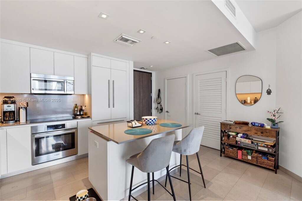 Beautiful and spacious 1 Bedroom 1 1/2 Bathrooms, with almost 1000 SqFt living space, designed by Architectonic located in the heart of Miami’s Financial District. Modern Italian cabinetry for both kitchen and Bathrooms, Bosch appliances, wine cooler, marble floors. Building amenities include exercise room, pool, party room, children’s playroom, deck, spa and many more.