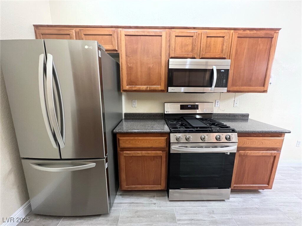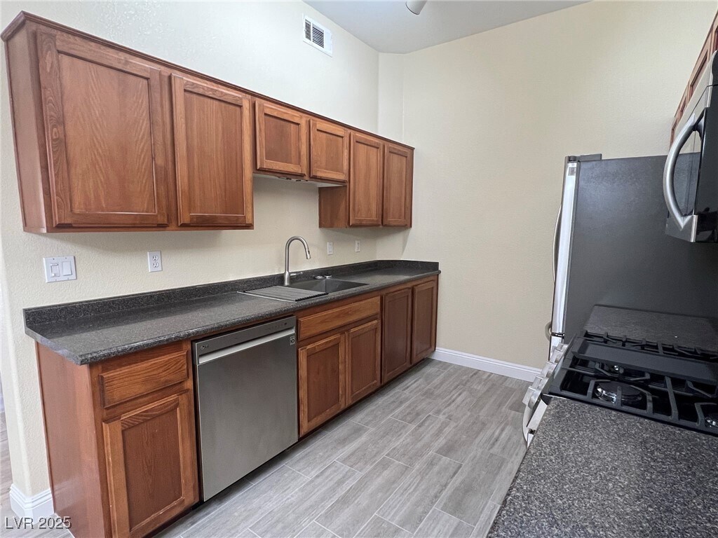 Gorgeous 3 bedroom 2 bathroom downstairs condo in Silverado Ranch! Fresh paint, new baseboards, brand new tile flooring throughout! Kitchen has all brand new LG Stainless Steel Appliances, new stainless steel deep single basin sink and faucet. Large master bedroom, separate from other bedrooms with huge walk in closet, and bathroom with wide double sink vanity. Upgraded stackable washer and dryer in hall. Two other bedrooms have upgraded light fixtures, mirrored closet doors with shelving area above for storage and tons of natural light. Extremely close to community pool and exercise room! Property is close to schools, freeway access to 215, LVAC, shopping and dining on Eastern.