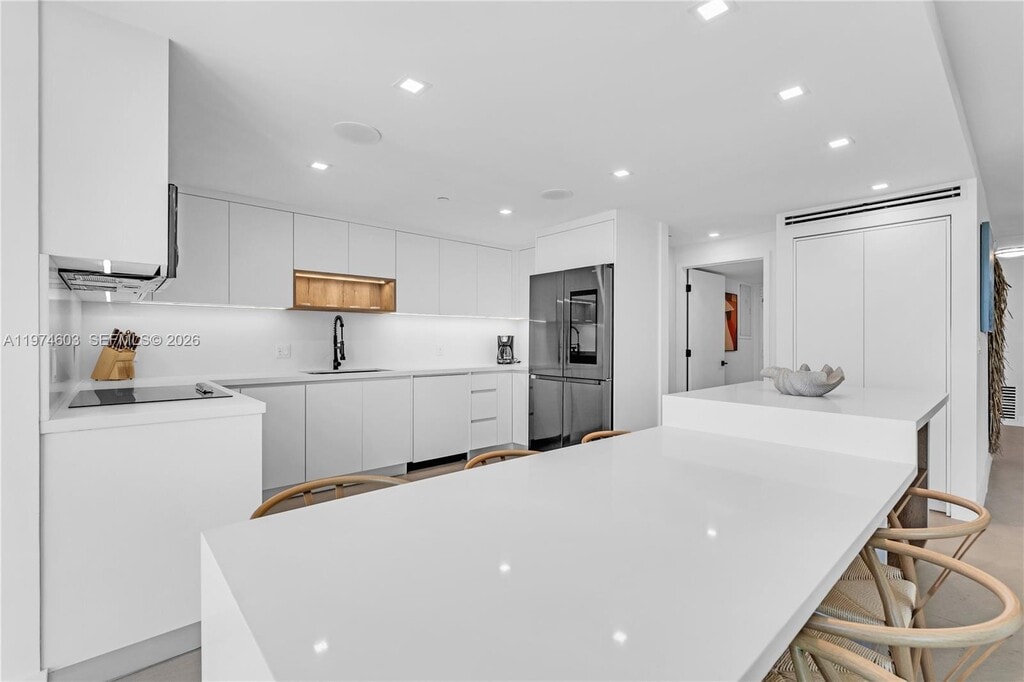 Oceanfront 2-bedroom room + den (with desk and murphy bed) and 3 full bathrooms located on the 9th floor of Casa del Mar condominium. The unit has been remodeled with high-impact windows and sliding doors, new interior finishes, and updated floors, walls, and ceilings. The living area opens to a balcony with ocean views and east- facing exposure. The residence also features bay views with east–west exposure that provides natural light throughout the day. The kitchen includes modern cabinetry, counters, custom lighting, and an open layout connected to the main living space. The condo is offered furnished, equipped and accessorized. Building amenities include two pools, beach access with umbrellas and chairs, a gym, tennis courts, a basketball court, a library, a ballroom, a children’s playroom, 24-hour security, and a lobby concierge. Association rules do not allow pets or golf carts. Minimum rental is 3 months. MLS # A11940553