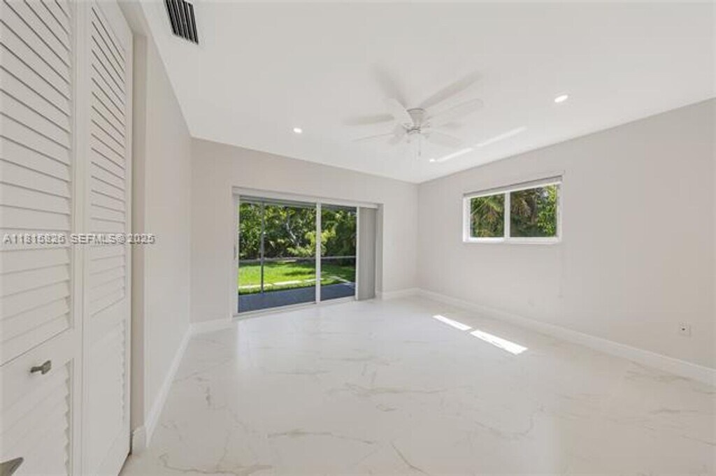 Courtesy of The Keyes Company Fully remodeled with exceptional attention to detail, this bright and stylish home is move-in ready! Featuring a spacious open kitchen, dining, and family area that flows seamlessly to a screened-in pool and garden oasis—perfect for entertaining without the hassle of leaves or mosquitos. With beautiful porcelain floors throughout, the home offers 4 light-filled bedrooms and 2 modern bathrooms, both with pool access. Additional highlights include hurricane-proof windows, brand new appliances (including a wine cooler), extensive lighting, a garage, and ample parking. A rare blend of quality, comfort, and value.
