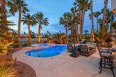 **$250/MONTH TOWARD CLUB MEMBERSHIP**UPGRADED HOME ON 16TH HOLE AT GUARD-GATED CANYON GATE COUNTRY CLUB*GORGEOUS VIEWS OF COURSE, LAKE & SURROUNDING MOUNTAINS, WITH NO NEIGHBORS IN FRONT OR BEHIND*RESORT-STYLE BACKYARD WITH SPARKLING SALTWATER POOL & SPA, BUILT-IN BBQ & OUTDOOR FURNITURE*CUSTOM IRON DOUBLE-DOOR ENTRY*LIVING ROOM & DINING ROOM FEATURE VAULTED CEILINGS WITH FLOOR TO CEILING WINDOWS*GOURMET ISLAND KITCHEN WITH CUSTOM ESPRESSO CABINETRY, STAINLESS STEEL APPLIANCES, BUILT-IN OVEN/MICROWAVE/WARMING DRAWER, WALK-IN PANTRY & BUILT-IN STAND-ALONE ICE MAKER*BUFFET WITH CABINETS, WINE FRIDGE & WINE RACK*FAMILY ROOM W/FIREPLACE*DOWNSTAIRS BED & 3/4 BATH*PRIMARY SUITE WITH FIREPLACE, CROWN MOLDING & BALCONY OVERLOOKING GOLF COURSE, LAKE & MOUNTAINS*RENOVATED PRIMARY BATH WITH WALK-IN SHOWER, SEPARATE BATHTUB & WALK-IN CLOSET WITH CUSTOM ORGANIZERS*PREMIUM LOCATION NEAR RETAIL, RESTAURANTS, DOWNTOWN SUMMERLIN, LAS VEGAS BALLPARK, RED ROCK RECREATION AREA & MORE!*EV OUTLET IF NEEDED*