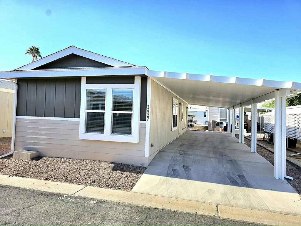 - Additional Property Details- Come and get your piece of the action happening here at Monte Vista Village Resort. This 55+ community has some amazing amenities, with an activities director keeping you active all year round. Whether you're here for the winter season or permanently, we have something for everyone! This Canyon Villa has 748 square feet of living space, 2 bedrooms, 2 bathrooms. Master bathroom has full sized shower, dual sinks and lots of room. Front guest room has it's own bathroom with stall shower, single vanity, and washer/dryer hookups. Dining and livingroom is spacious and the kitchen has lots of cabinetry for the culinarian in you. Give us a call to book your viewing!