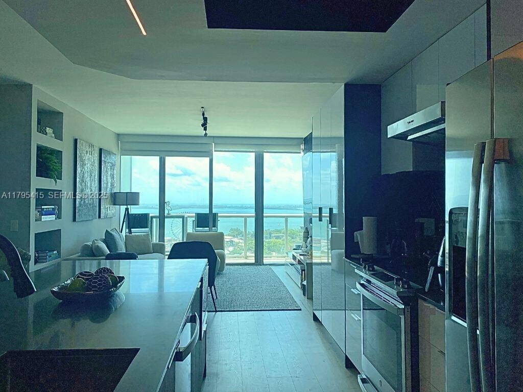 Experience elevated Miami living in this stunning high-floor one-bedroom residence overlooking Biscayne Bay and the downtown skyline. Floor-to-ceiling glass floods the space with natural light, creating seamless indoor-outdoor living and capturing panoramic views from sunrise to city lights. The open-concept layout features a spacious living area, a premium kitchen with sleek European cabinetry, and an oversized private balcony perfect for relaxing or entertaining. The bedroom is a tranquil retreat with generous closet space and spa-style finishes. Perched high above the city, this residence delivers privacy, elegance, and the vibrant energy of Miami’s urban core—all just steps from world-class dining, entertainment, and cultural landmarks.