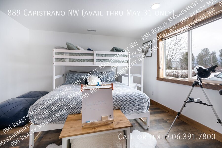 Available Mid-February thru May 31, 2026. Internet & Utilities, snow plowing & yard care included in rent!!! Rural setting just outside of Kalispell Montana but yet close to shopping, restaurants, recreational facilities and more. This home has 3 bedrooms, 2.5 baths and is fully furnished, so just bring your personal belongings and move in. Enjoy view of the pond and the fruit trees. Starlink internet(not phone). Details and applications at for inquiries call . A mature dog will be considered. Avail dates approximate until lease signed. Towels and linens will not be provided. Sizes: Bedroom 1: King Bed | Bedroom 2: King Bed | Bedroom 3: 1 (bunk bed) Lower: King Bed - Upper: Full/ Twin Bed