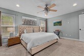 1st month's rent in November is free! Introducing a charming and beautifully landscaped 4-bedroom, 2-bathroom home nestled in the sought-after Sandhills Farm Life area, within the desirable New Century & Union Pines School district, right in Whispering Pines! Perfectly situated for an easy commute to Ft. Bragg, this delightful home boasts a bonus room that can serve as a 4th bedroom with double door closet. Enjoy the warmth of beautiful wood flooring in the living room, while the carpeted bedrooms offer a cozy ambiance. The open concept floorplan is perfect for entertaining while cooking. In-unit laundry room located right off the kitchen offers extra space for storage. All bedrooms are conveniently located on the main level, with the bonus room on the second floor. The primary suite features a spacious walk-in closet, tiled walk-in shower, double vanity, and a relaxing jacuzzi tub. This home is equipped with a smart thermostat for easy adjusting from your devices. Step outside onto the covered deck and take in the serene surroundings. With private parking and a 2-car garage, this home offers both convenience and comfort. Pets are considered, subject to a non-refundable pet fee. Welcome home to your perfect retreat!