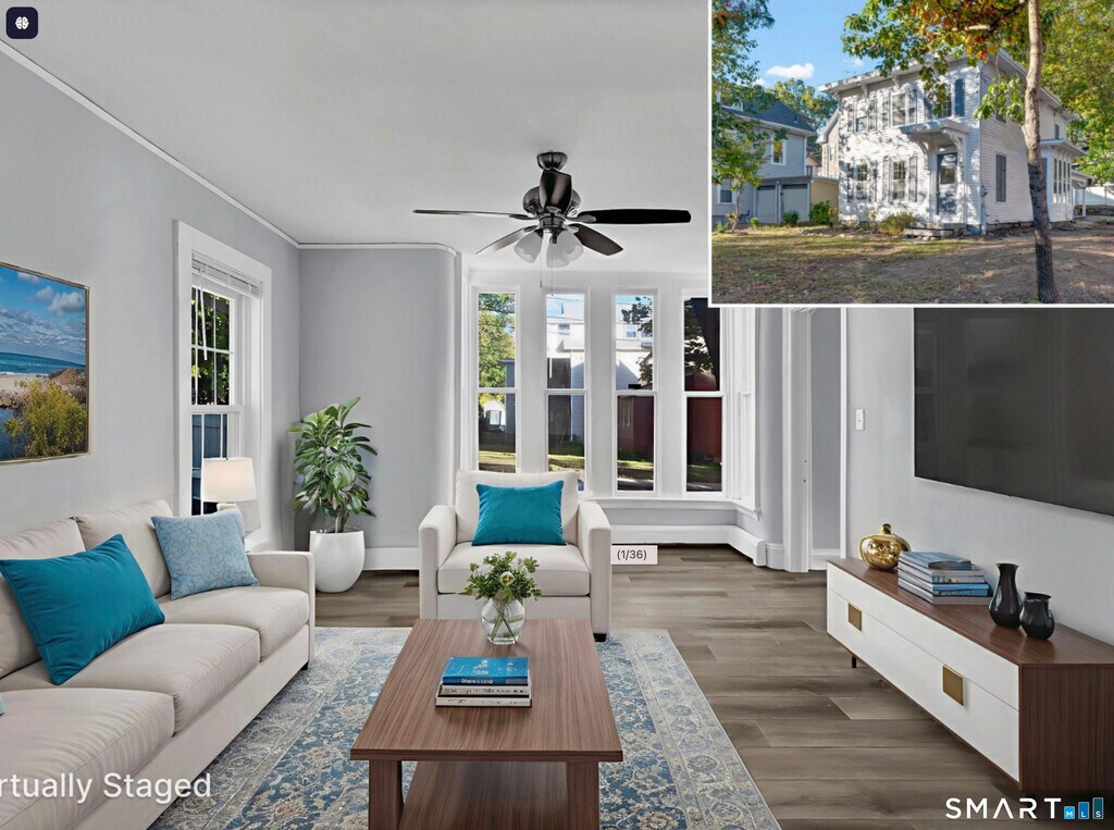 Call for Availability - Beautifully updated and move-in ready! This nearly 2,000 sq ft colonial has been completely refreshed inside and out with new paint, stylish modern grey wood floors, soft carpet, and brand-new thermal windows. Offering 4 bedrooms and 1.5 baths, including 3 bedrooms and a full bath upstairs plus a convenient first-floor bedroom with its own half bath and laundry-washer and dryer included. The spacious main level features a cozy wood-burning stove and a fully applianced kitchen. Enjoy the private fenced backyard perfect for entertaining, plus a rear workshop/shed with skylights-an ideal space for hobbies or storage. Modern, functional, and full of charm-schedule your showing today! MLS# 24146015