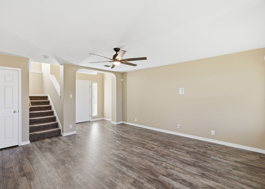 Freshly updated home offers 3 bedrooms upstairs, including a large primary suite, plus a loft and two living areas for flexible use. A half bath is conveniently located downstairs, along with luxury vinyl plank and tile flooring. The home features a dedicated laundry room with washer and dryer connections, ceiling fans throughout, and a refrigerator included. Recent updates include fresh paint, new flooring, professional cleaning, and new sod, making it truly move-in ready. Enjoy outdoor space on the patio slab and a large corner lot. Schedule your showing or apply today!