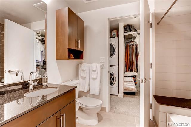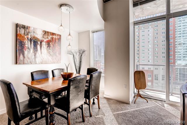 Available for move October 1st. This gorgeously appointed 1-bedroom, 1-bathroom, FURNISHED home is available for lease. City and mountain views from its soaring floor-to-ceiling glass walls leave you breathless. The open floor plan includes a gourmet kitchen which features granite countertops, kitchen island with breakfast bar, hardwood floors and stainless-steel appliances, living room, dining room, master bedroom with queen size adjustable Tempur-Pedic bed and a walk-in closet, in-unit washer/dryer, and stunning views from your private balcony. SPIRE is Denver's premier high-rise condominium community and offers over 35,000 square feet of amenities: 24-hour Courtesy Desk and fitness facility, year-round outdoor pools and hot tubs, spacious lounges available for reservation, movie theater, BBQ area, guest suites and more. Conveniently located on 14th and Champa streets, walk to nearby restaurants, night life, Denver Center for the Performing Arts, Colorado Convention Center, Denver Pavilions Mall, Union Station neighborhood and sports arenas. Utilities are an additional $200 / month and include tv, internet, water and electricity. Parking and storage INCLUDED (a $200+ value). Monthly rental price including utilities and 1 parking space is $2,695 / month. No pets / No smoking. Lease lengths negotiable; 4 month minimum. Rental rate varies by lease length. Some furniture items have been updated from photos, such as the sofa. Denver Residential Rental License # 2023-BFN-0063798. Condominium MLS# 4614250