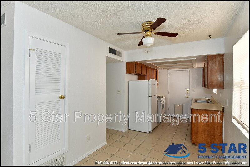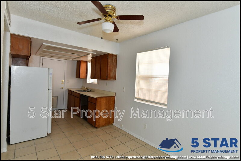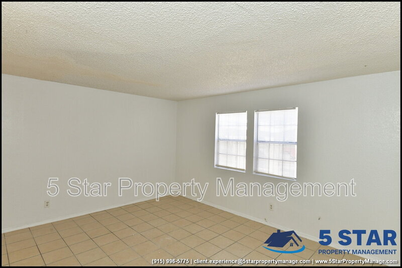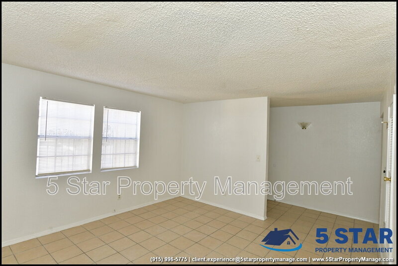 This inviting Northeast El Paso duplex offers a comfortable living space paired with convenient access to major city routes. Inside, tile flooring throughout the home creates a clean, easy-care interior while natural light brightens the living area. The kitchen offers practical cabinet storage and an efficient layout that keeps everything within reach for meal preparation. Two bedrooms provide comfortable living space with flexibility for additional uses such as a home office or creative area. A full bathroom serves the home with simple convenience. Washer and dryer hookups are included to make laundry routines easier. Outside, a fully cemented backyard creates a private outdoor area that is easy to maintain and includes a storage shed for tools or extra belongings. Located near US-54 with quick access to Fort Bliss, local dining, shopping centers, and Northeast El Paso parks. Deposit-Free Renting service to Obligo qualified renters, fees may apply. For Showings information and availability, please call at By: 5 Star Property Management | EL PASO Texas Rentals | EL PASO Property Management | Property Management in EL PASO *Important: Information is deemed reliable but not guaranteed. All information is submitted subject to errors, omissions, change of price before the lease, or withdrawal without notice.