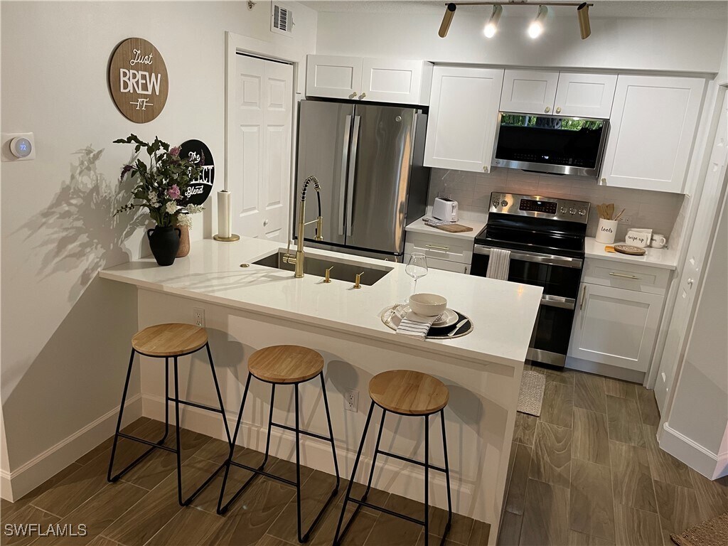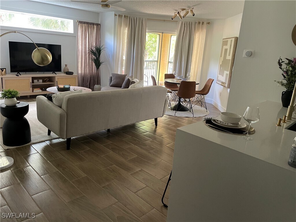 AVAILABLE FOR SEASON & OFF-SEASON RENTAL – 90-Day Minimum! This immaculate,beautifully upgraded 2nd-floor corner unit is located in the desirable,gated community of San Mirage in Bonita Springs! With plenty of natural light,this fully furnished unit features 2 spacious bedrooms,each with its own full bath and walk-in closet. Enjoy wood flooring throughout,and the convenience of a full-sized washer and dryer just off the kitchen. San Mirage offers a stunning heated saltwater pool,spa,cabanas,bar area with Wi-Fi,fitness room,clubhouse,and tennis courts—everything you need for relaxation and recreation. Cable and water are included! Perfectly situated just minutes from world-class shopping at Coconut Point and Miromar Outlets,as well as top-notch dining,healthcare,and entertainment options. A short drive to Southwest Florida International Airport and the area's famous white-sand beaches! Sorry,no pets allowed. Don't miss out on this fantastic seasonal rental!